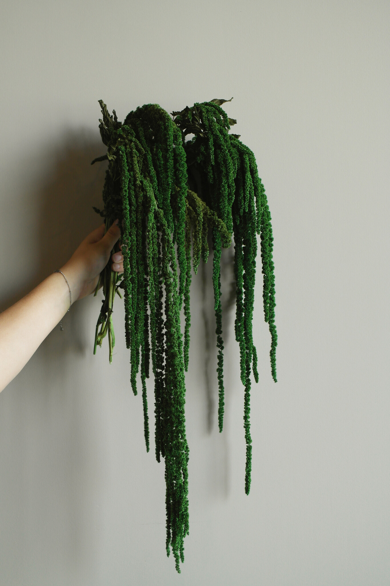 The hanging, prepared Amaranthus flowers definitely provide the ultimate jungle feel! This bundle contains 5-8 stems and this bundle is 40-70 cm high in total.