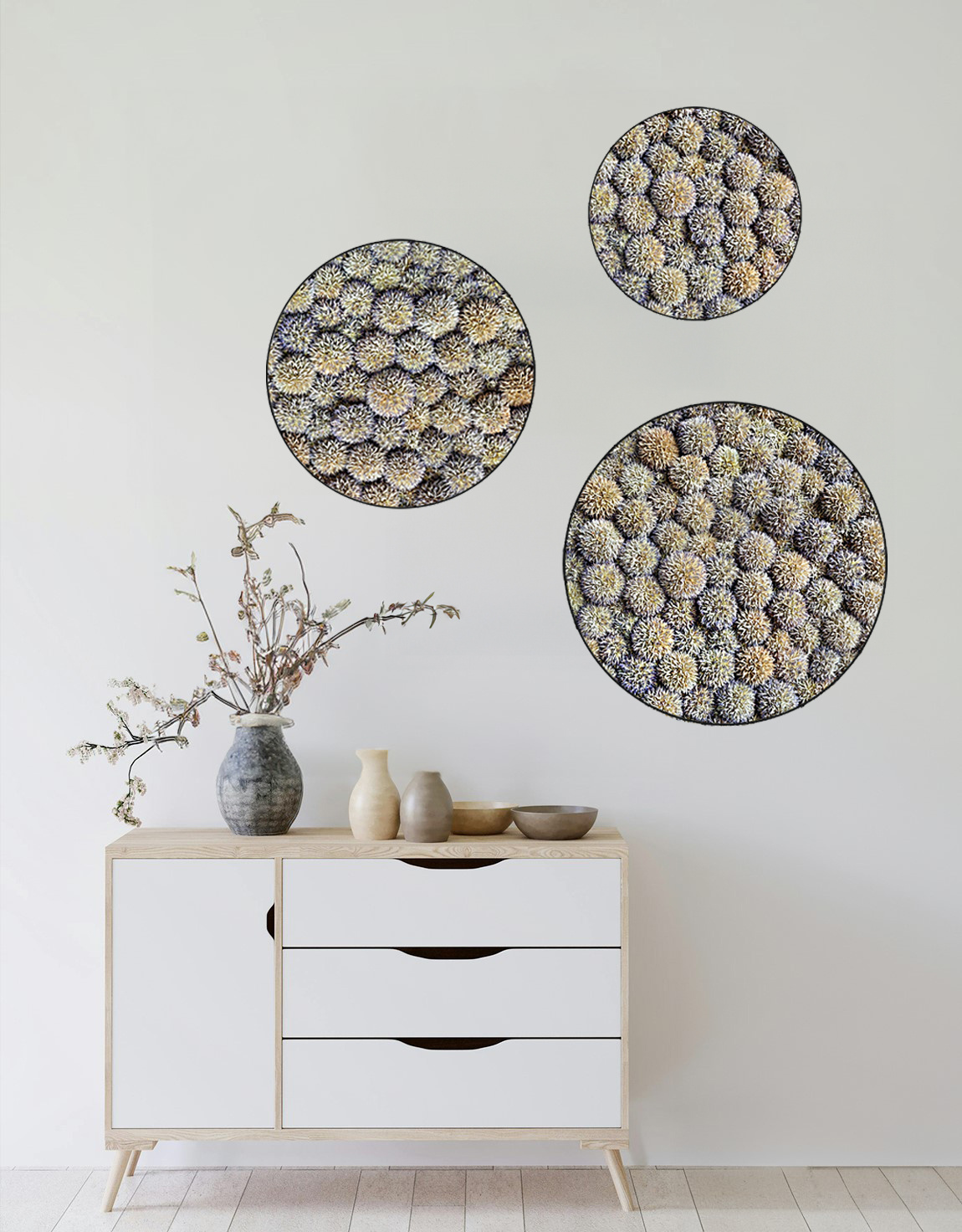 Wij hebben de Echinops cirkel set van drie besteld en het resultaat is geweldig. De verschillende formaten geven een speels en luxe effect aan de muur. De combinatie van de natuurlijke kogeldistel en de zwarte stalen rand maakt het een echte eyecatcher. Elk stuk heeft een eigen karakter en samen vormen ze een prachtig geheel. Heel blij mee!