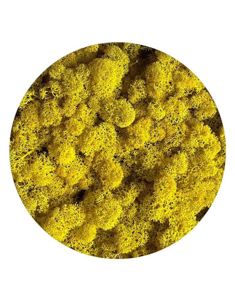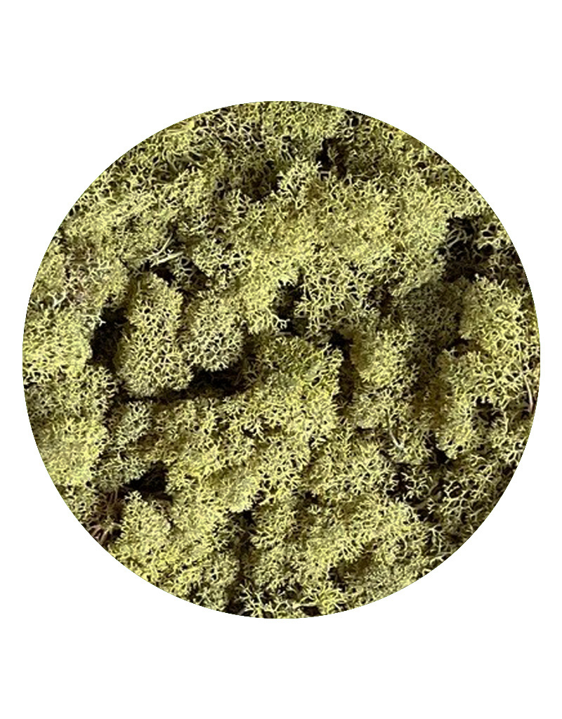 Preserved reindeer moss is a sustainable natural product that retains its original softness, texture, and colour thanks to a plant-based preservation process. This makes it the ideal choice for indoor moss decoration, such as moss wall art, moss letters, green panels or acoustic designs in commercial interiors.