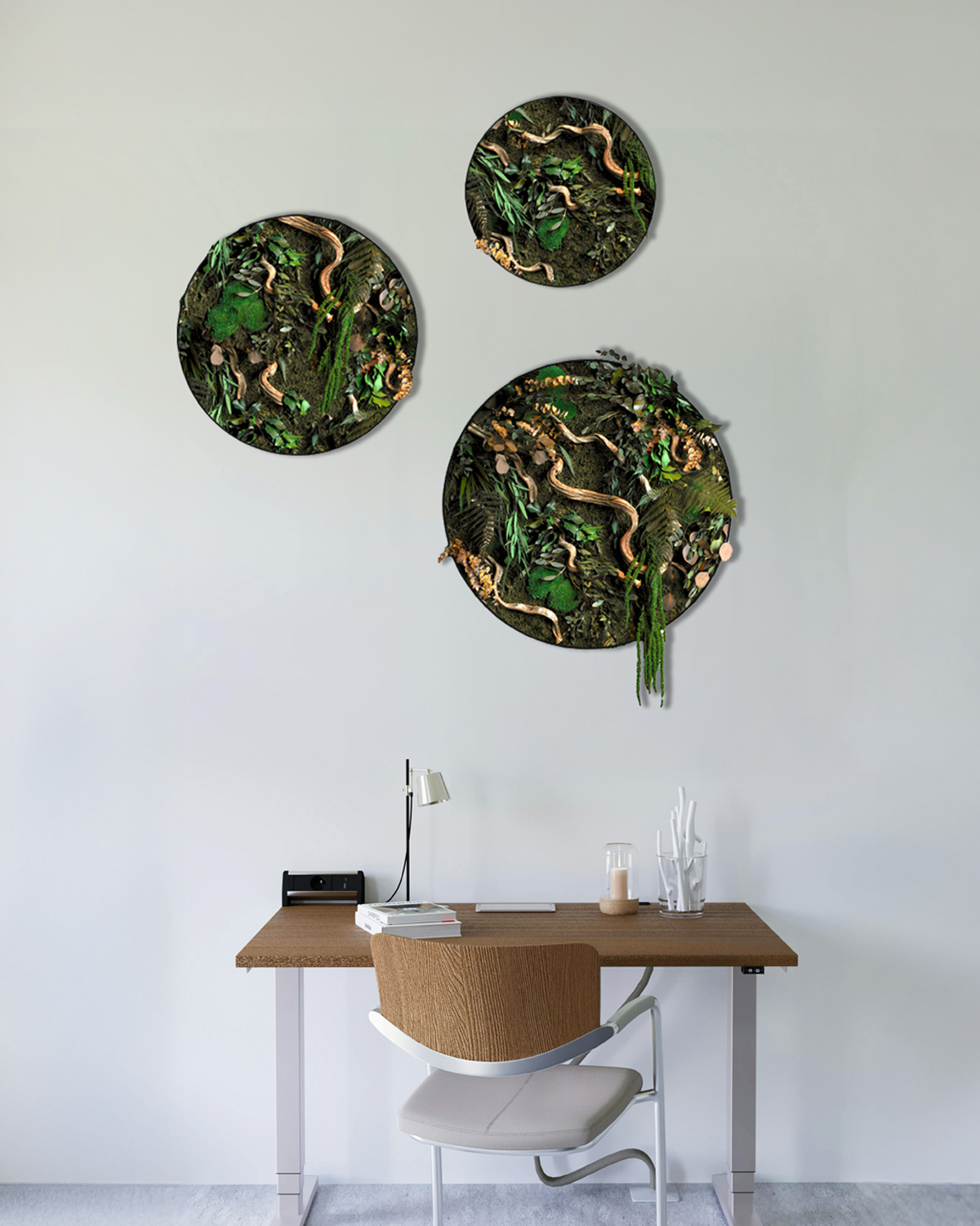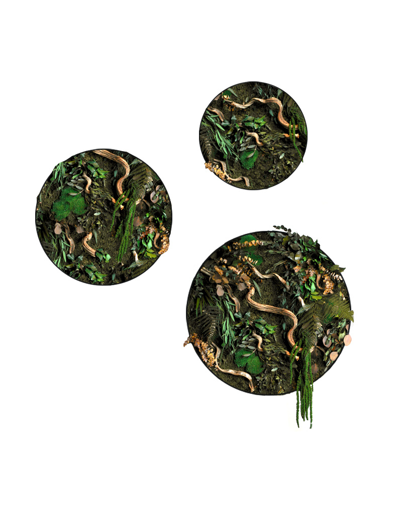 The image shows the atmosphere and design of set 3. Since it is a natural product, every jungle painting is unique. This means the composition of the purchased jungle circles may differ from the selected photo. If you would like a different size or wish to use our assembly service, please contact us at [email protected]