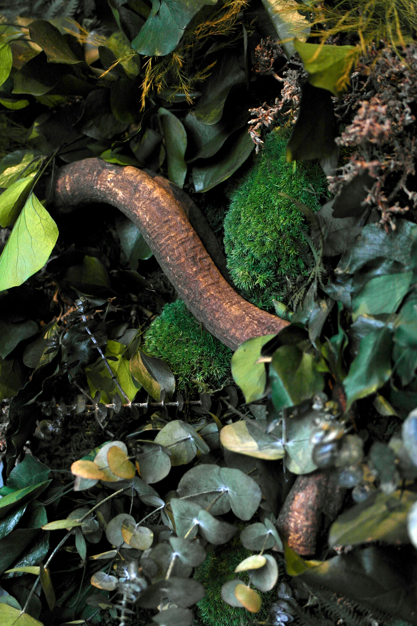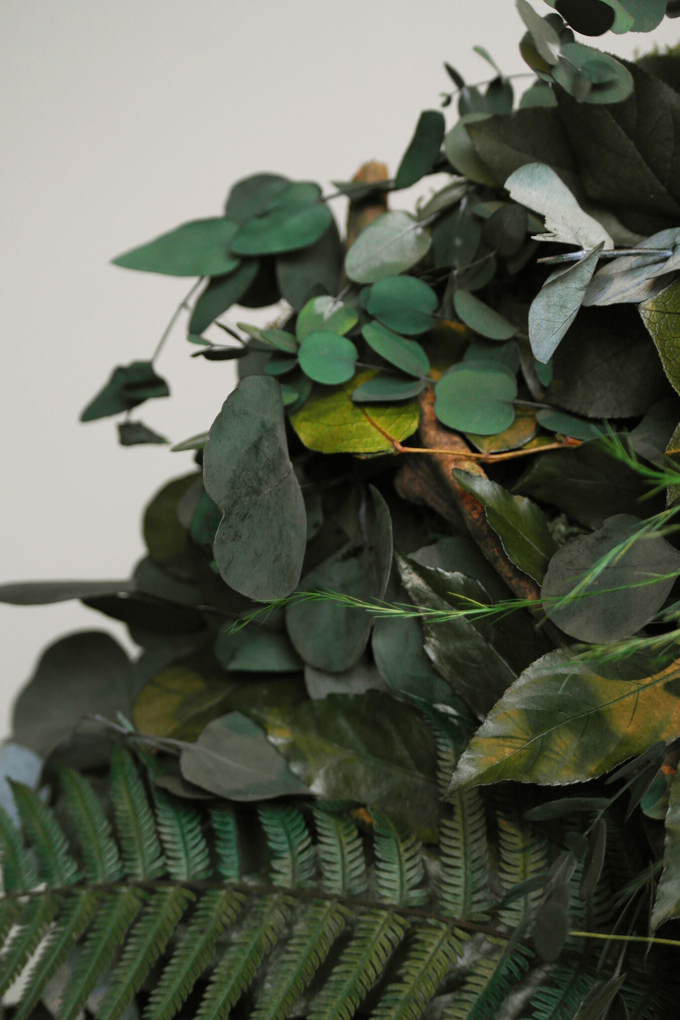 Jungle variant Java features different types of leaves and ferns combined with a wooden vine. The grey accents featured in the painting provide a nice contrast to the dark green background of flat moss. Just like the moss, the jungle leaves are also prepared which ensures that the jungle painting remains beautiful for years.