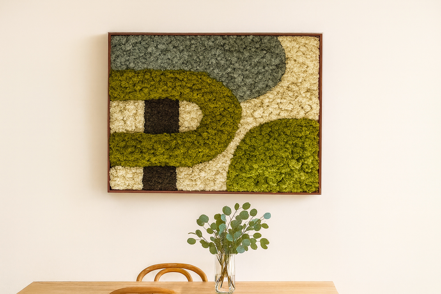 Experience the power of Japandi design, crafted from real moss in a calming composition.