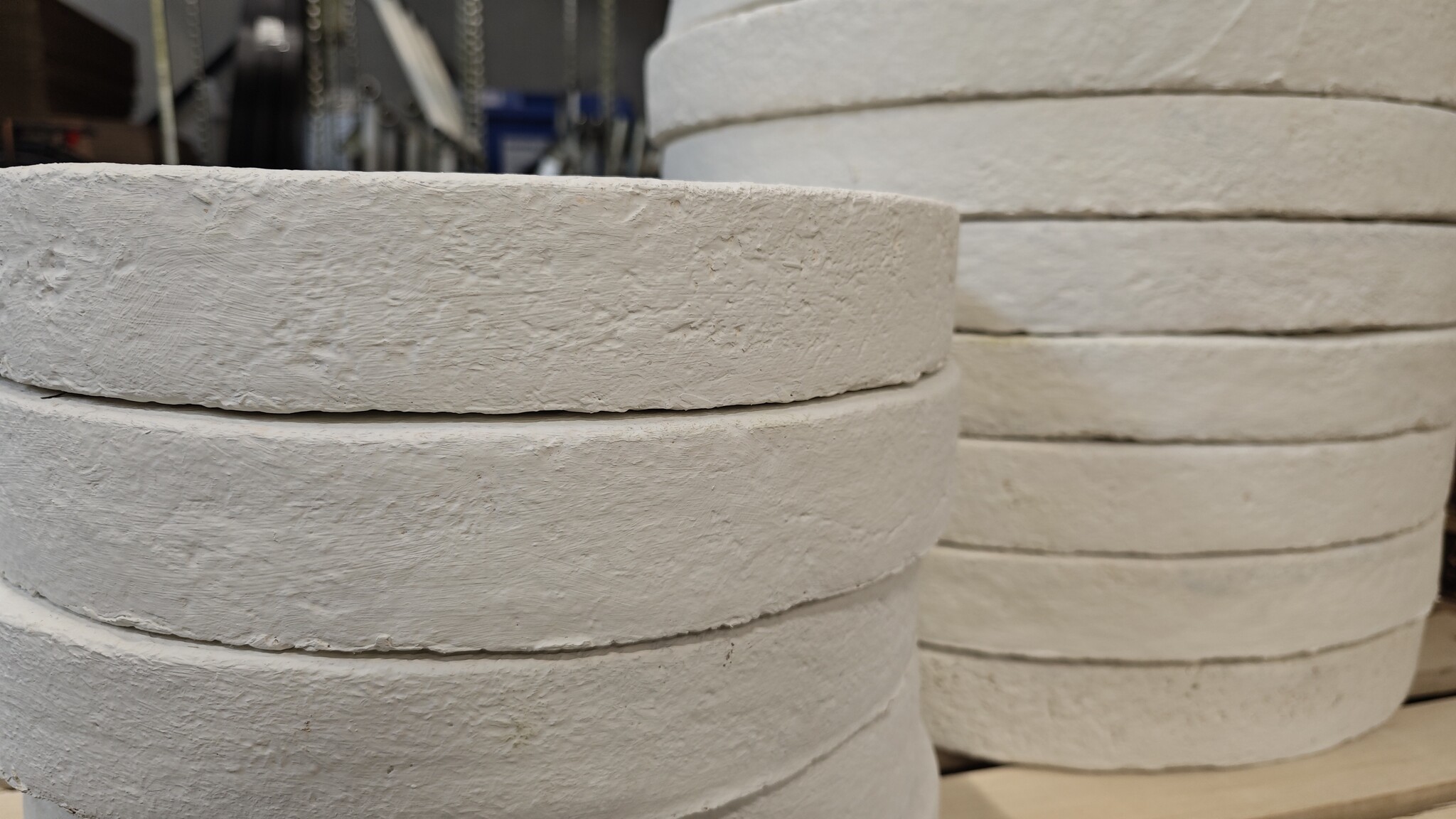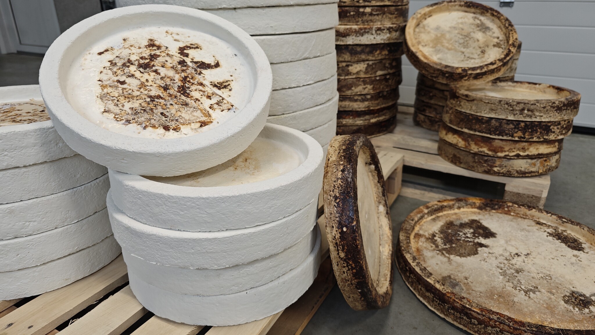 For those who want something more daring, we also have our moss circles made of mycelium with a chestnut brown marbled look. We give the hyphae (fungal threads) a bit more space as they grow, naturally creating a beautiful marbled pattern. This creates a warm and natural look in the room.