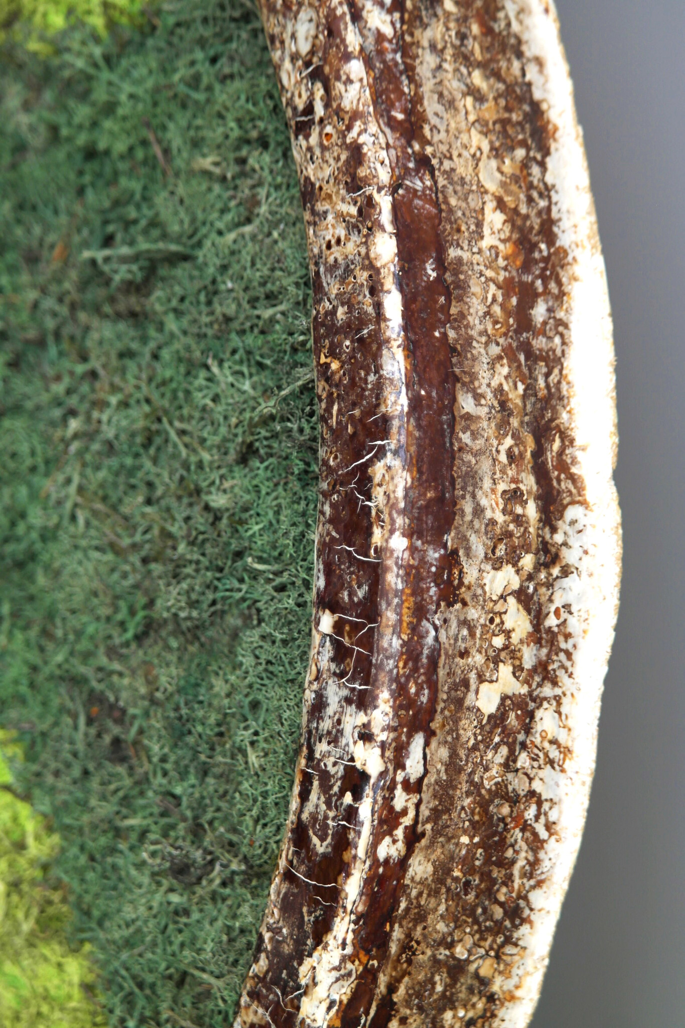 The natural Moscelium circles are characteristic of nature's simplicity. These creations are made of pure mycelium in a white colour. These circles combined with moss create a natural and rustic look, which will fit perfectly into any natural environment or modern room.