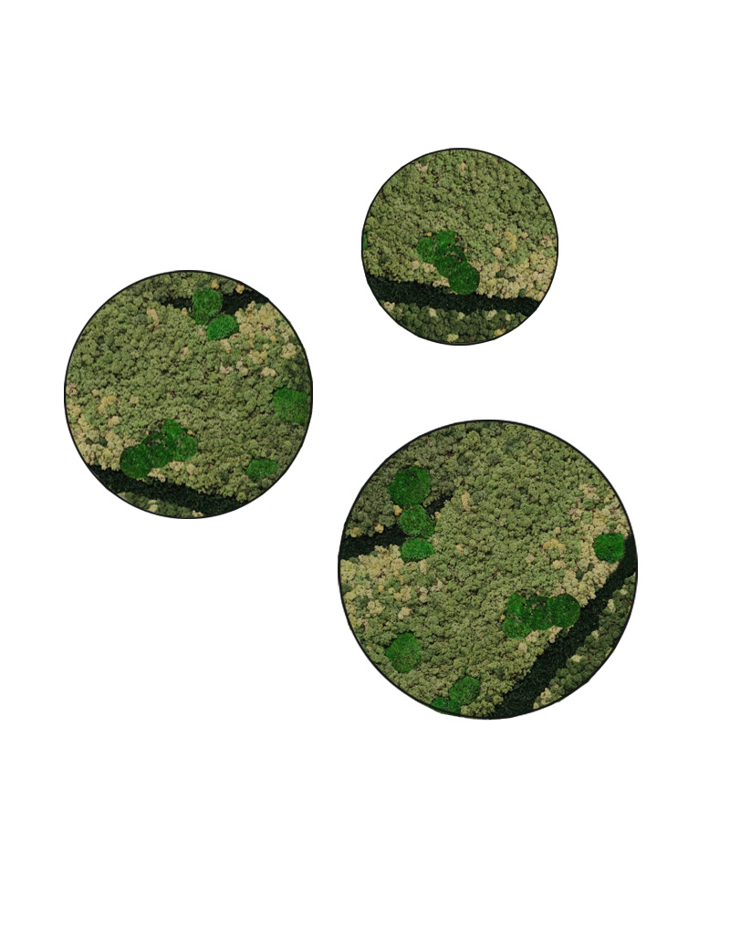 The image shows the mood and design of set 3. As it is a natural product, each moss artwork is unique. Therefore, the layout of the purchased moss circle may differ from the selected photo. Should you require a different size? Please contact us at [email protected].