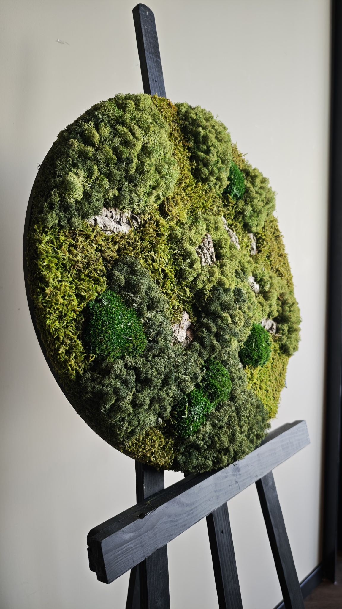The image shows the pattern of a moss circle diameter 1.00. As it is a natural product, each moss artwork is unique. Therefore the format of the purchased moss circle may differ from the selected photo. Should you require a different size? Please contact us at [email protected].