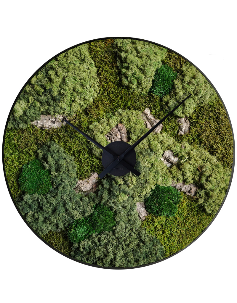 Optionally, we can incorporate a clock with black hands in the moss circle. This is only possible for circles with a diameter of 60, 80, 100 cm. The clock has a diameter of 42 cm. The clock comes with a battery. If you order 3 moss circles and the clock, we will process the clock in the moss circle with a diameter of 60 cm.