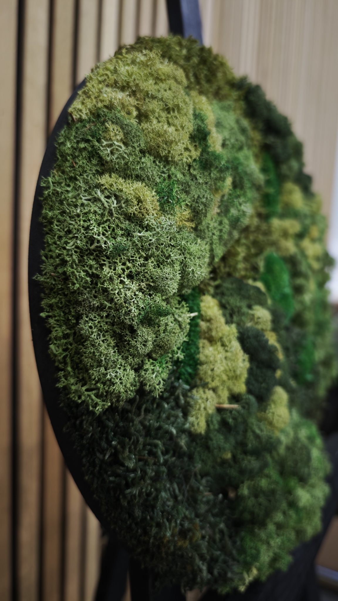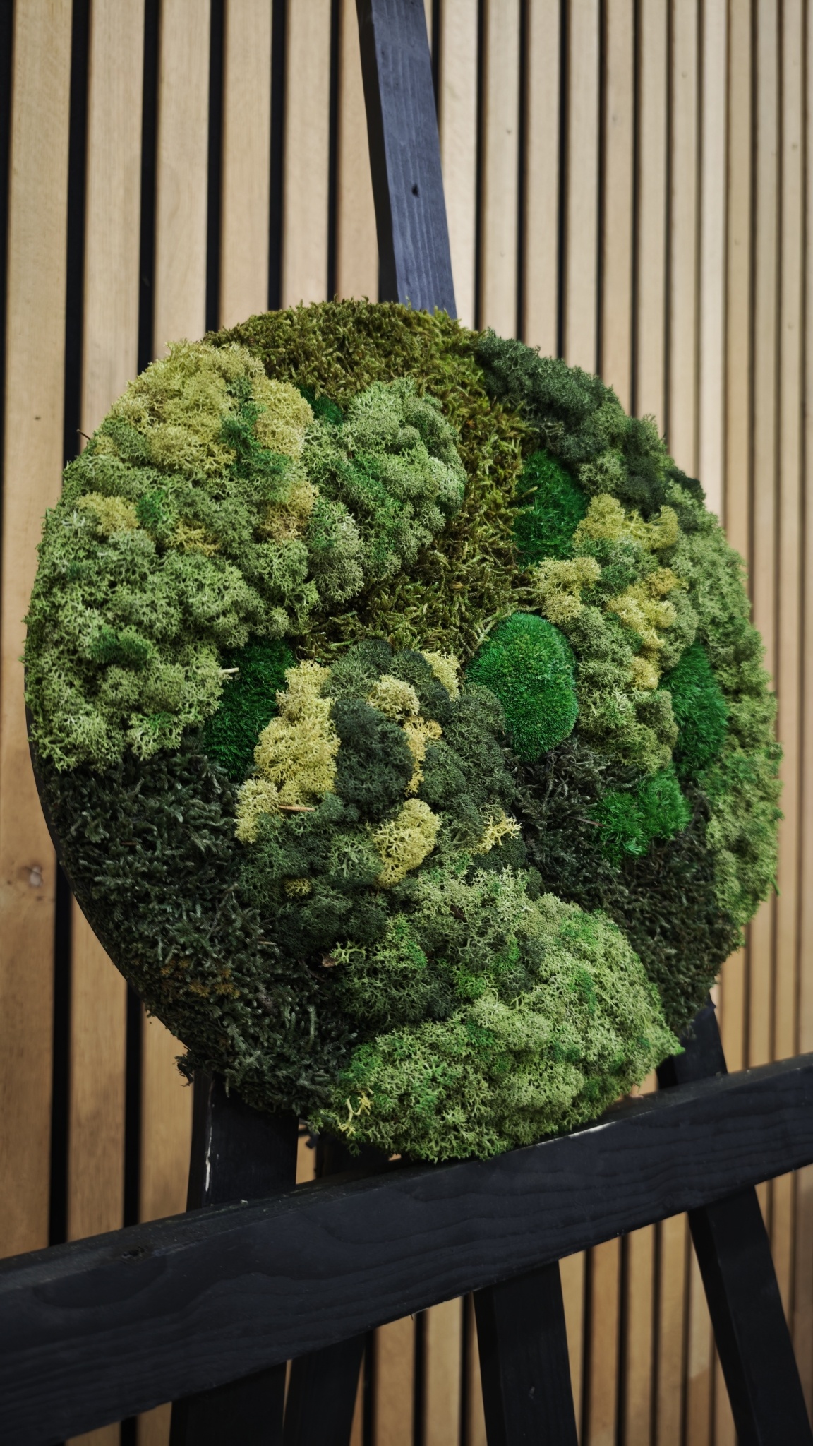 The image shows the pattern of a moss circle diameter 1.00. As it is a natural product, each moss artwork is unique. Therefore the format of the purchased moss circle may differ from the selected photo. Should you require a different size? Please contact us at [email protected].