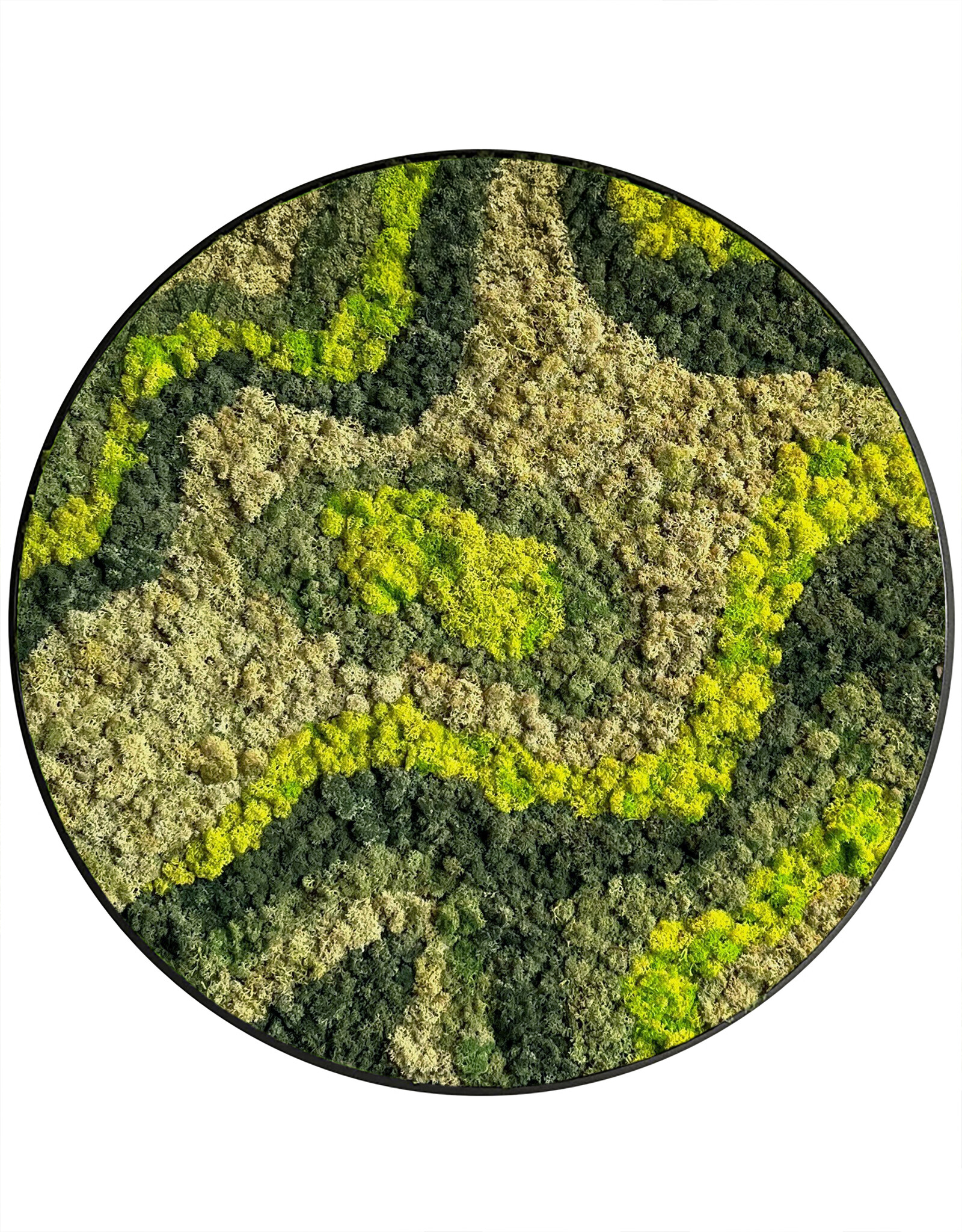 The image shows the pattern of a moss circle diameter 1.00. As it is a natural product, each moss artwork is unique. Therefore the format of the purchased moss circle may differ from the selected photo. Should you require a different size? Please contact us at [email protected].