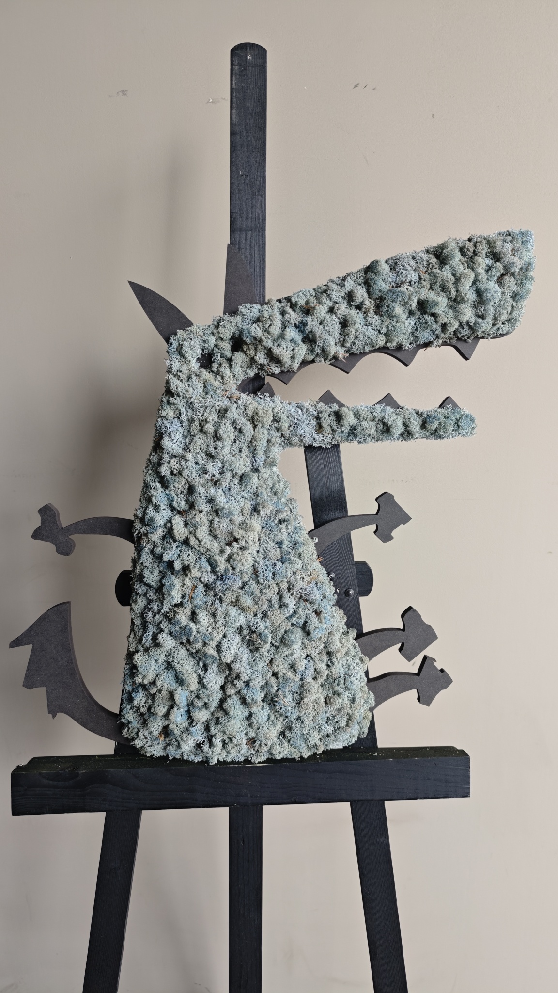 With sharp teeth, Drako is a real dragon. In the different moss colours, it is a great eye catcher in the children's room or, for example, in a play corner in the living room. On the back of Drako we have attached two hanging eyes with tooth hooks. This allows you to easily hang it against the wall. The moss creatures can be ordered in different colours. We have attached the moss with the utmost care and treated it with natural salts. This makes the moss completely maintenance-free, it keeps its colour and no insects nest in it. It is a 100% natural product which is safe for children. The moss creatures measure up to 0.60 wide x 0.60 high. The thickness of the moss is +/- 5 to 6 cm.