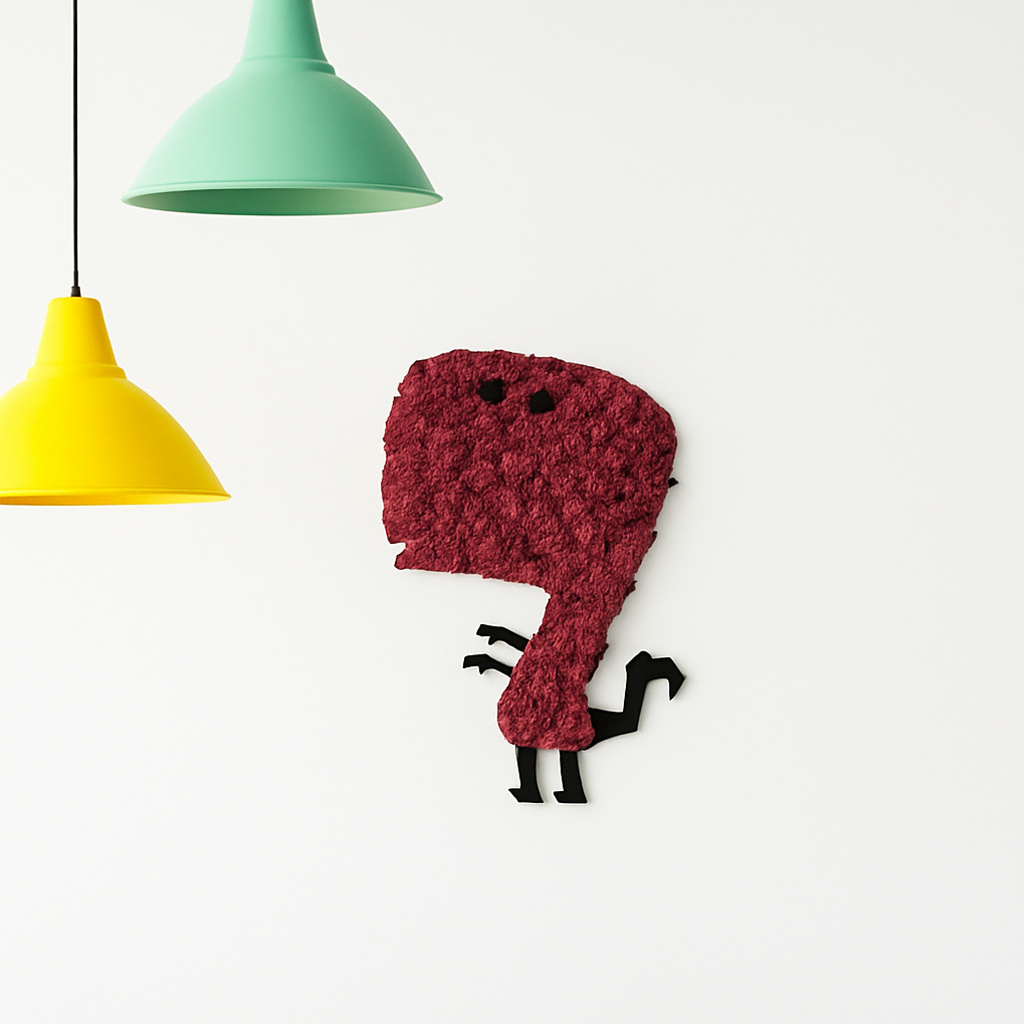 Whaaaa... what do I hear there? It's dino Grumpy! On the back of Grumpy, we have attached two hanging eyes with tooth hooks. This allows you to easily hang it against the wall. The moss creature can be ordered in different colours. We have attached the moss for you with the utmost care and treated it with natural salts. This makes the moss completely maintenance-free, it keeps its colour and no insects nest in it. It is a 100% natural product which is safe for children. The moss creatures measure up to 0.60 wide x 0.60 high. The thickness of the moss is +/- 5 to 6 cm.