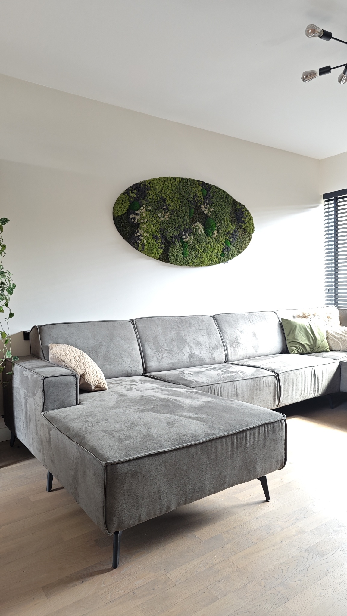 Did you know that our round and oval moss artwork with a steel edge fits perfectly into an industrial interior? An oval moss artwork breaks through the clean lines that often recur in interiors. The soft and natural look of the moss beautifully complements the often 'hard' materials used, such as concrete, steel and glass.