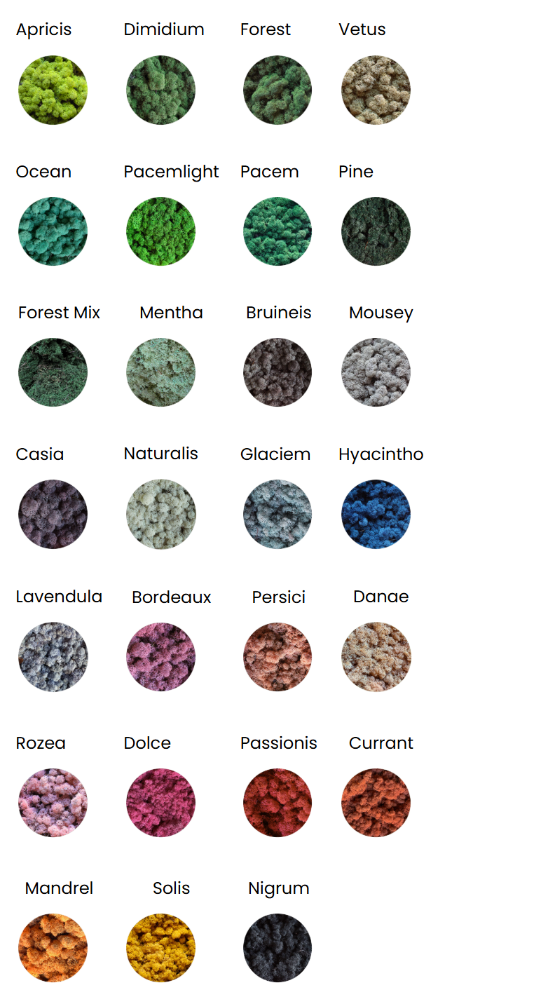 Curious about the possible colors of our moss? Check out the colors in the moss samples.