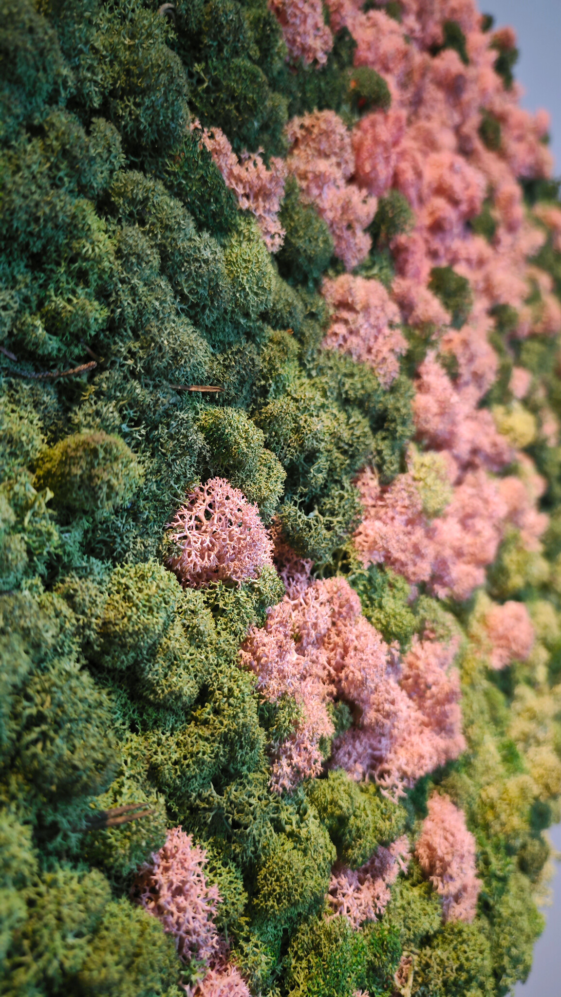 Bring nature inside with moss artwork Arya! This beautiful moss artwork made of reindeer moss has been carefully composed and shows a beautiful mix of the colours: Forest, Dimidium, Vetus and Pinka. Because the moss artwork consists entirely of reindeer moss, it gives a chic and full look. So let moss artwork Arya fill the room with the atmosphere of nature combined with the vibrant colours.