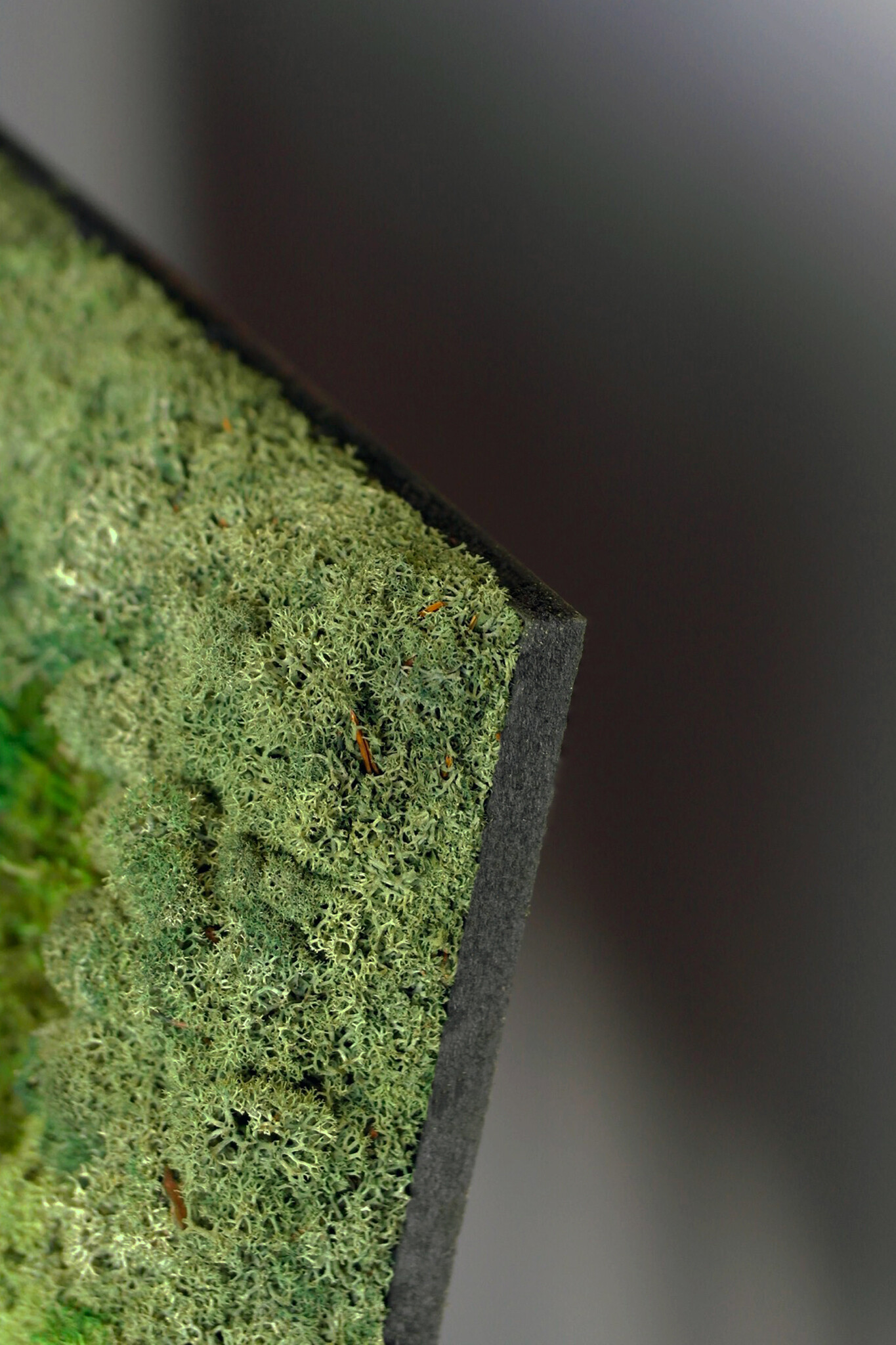 Each moss puzzle is handcrafted from preserved reindeer moss. No two are exactly alike. You're getting a unique piece of nature. The photo shows an example sized 100 x 65 cm.
