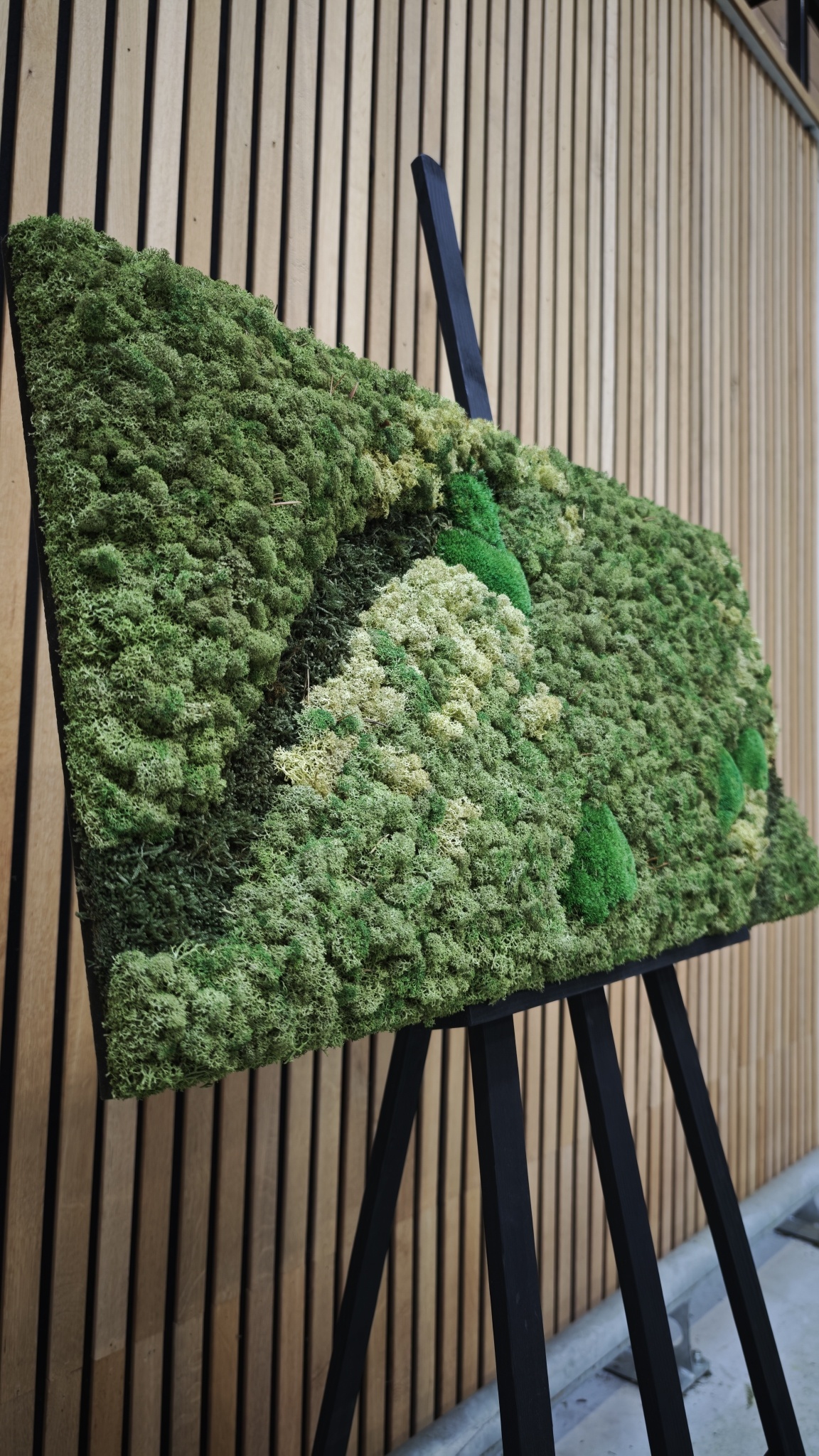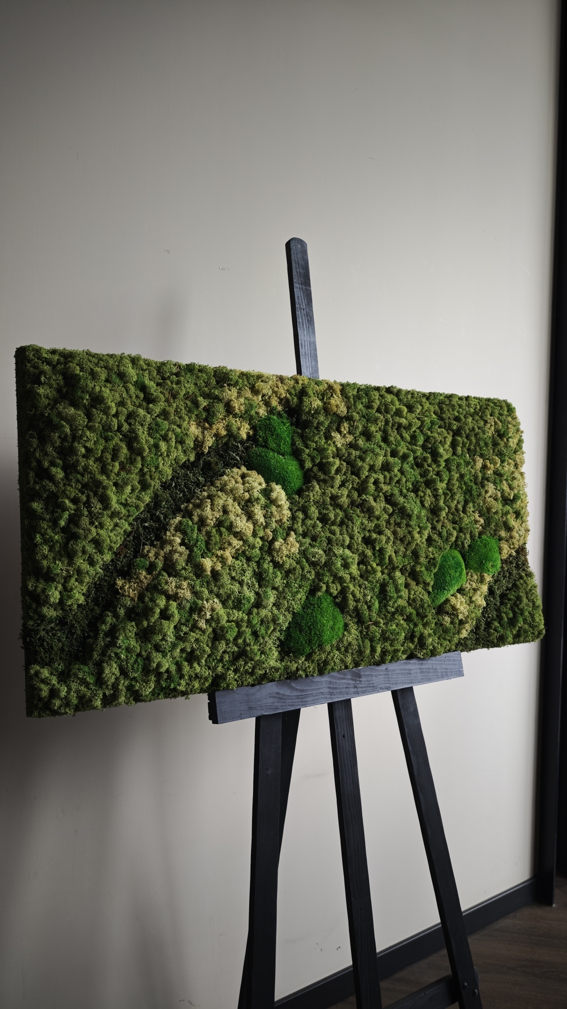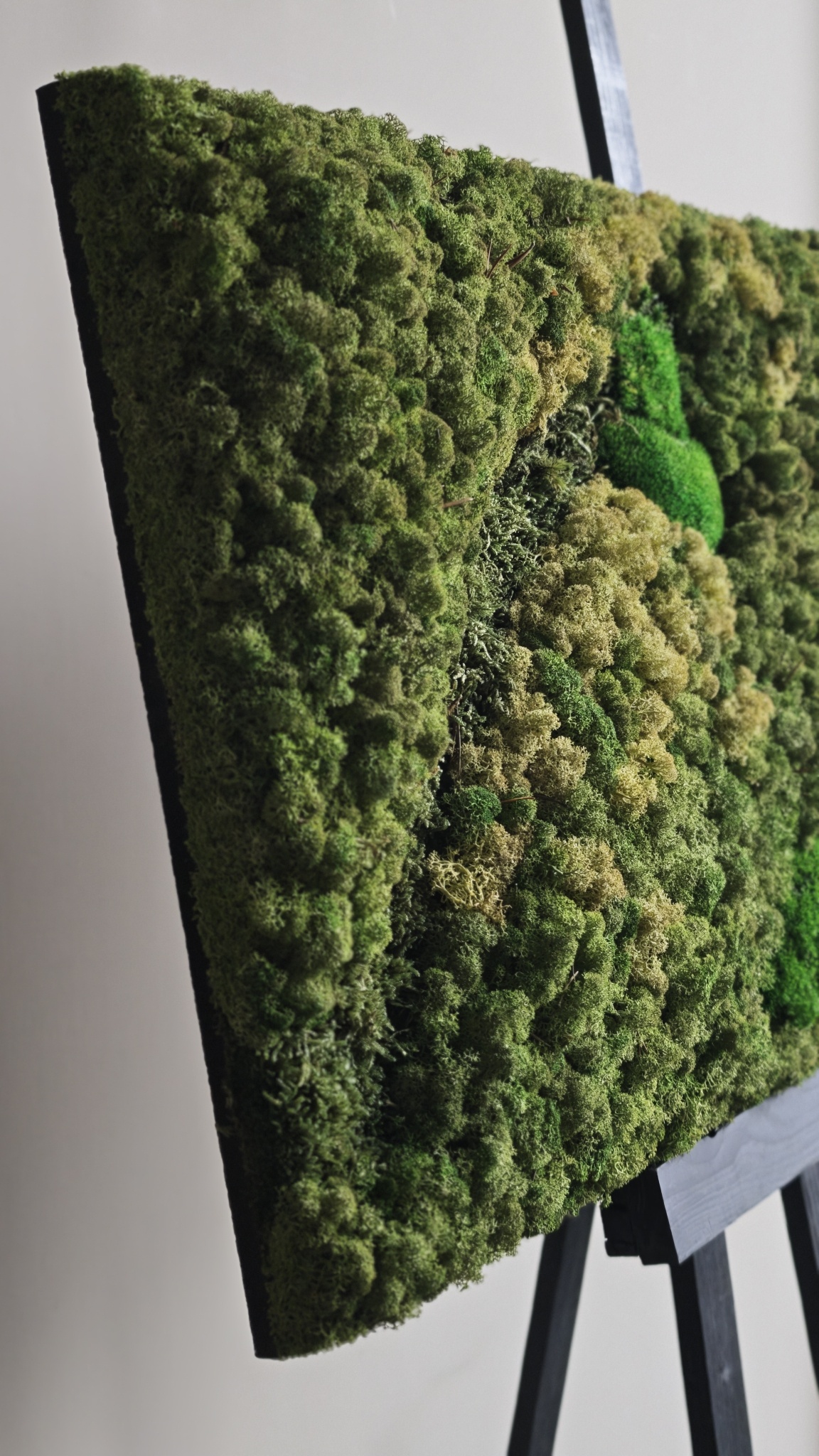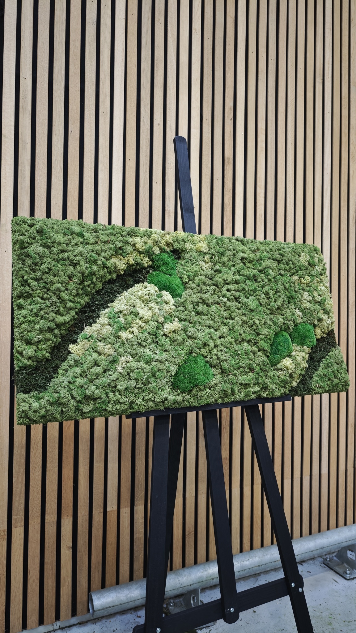 The image shows the pattern of a moss rectangle in the size 120x60 cm. As it is a natural product, every moss artwork is unique. As a result, the layout of the purchased moss artwork may differ from the selected photo. If you require a different size? Please contact us at [email protected].
