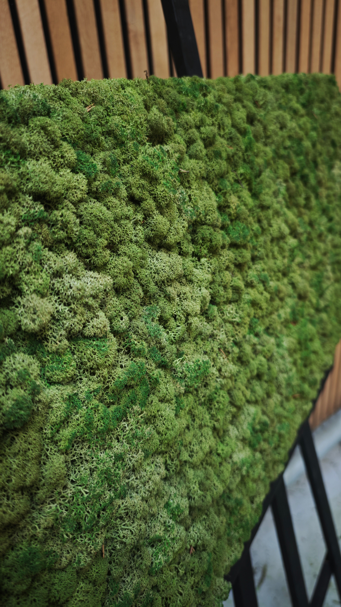 Dimidium is composed of 100% reindeer moss in the green colour. The reindeer moss has a thickness of +/- 5 cm. The moss is bushy, soft and has hollow branches. The moss contains needles, giving it a natural look. Would you like to create a peaceful and luxurious look in your interior? Then this moss artwork in one colour reindeer moss is suitable for you.