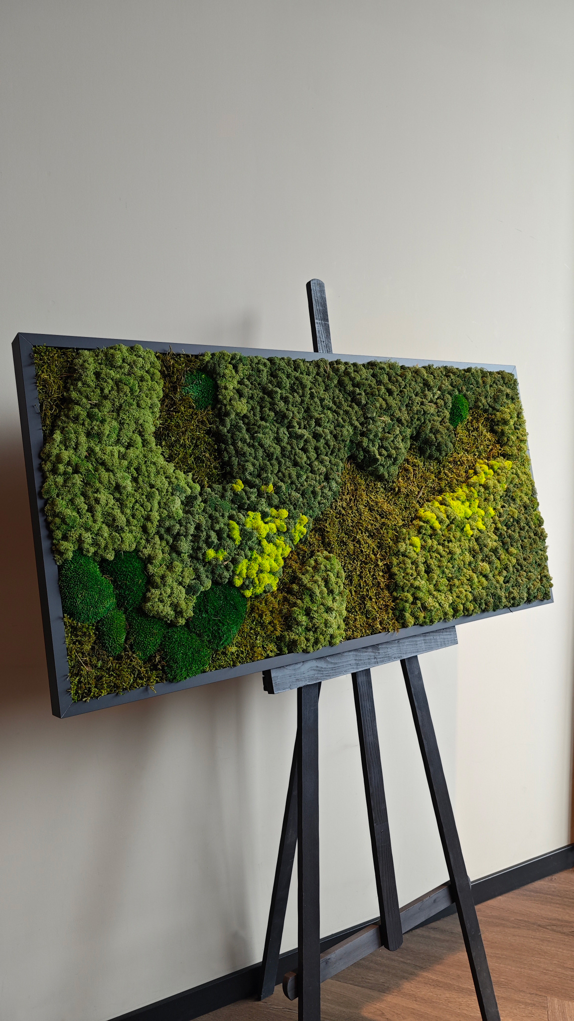 The image shows the pattern of a moss rectangle in the size 120x60 cm. As it is a natural product, every moss artwork is unique. As a result, the layout of the purchased moss artwork may differ from the selected photo. If you require a different size? Please contact us at [email protected].