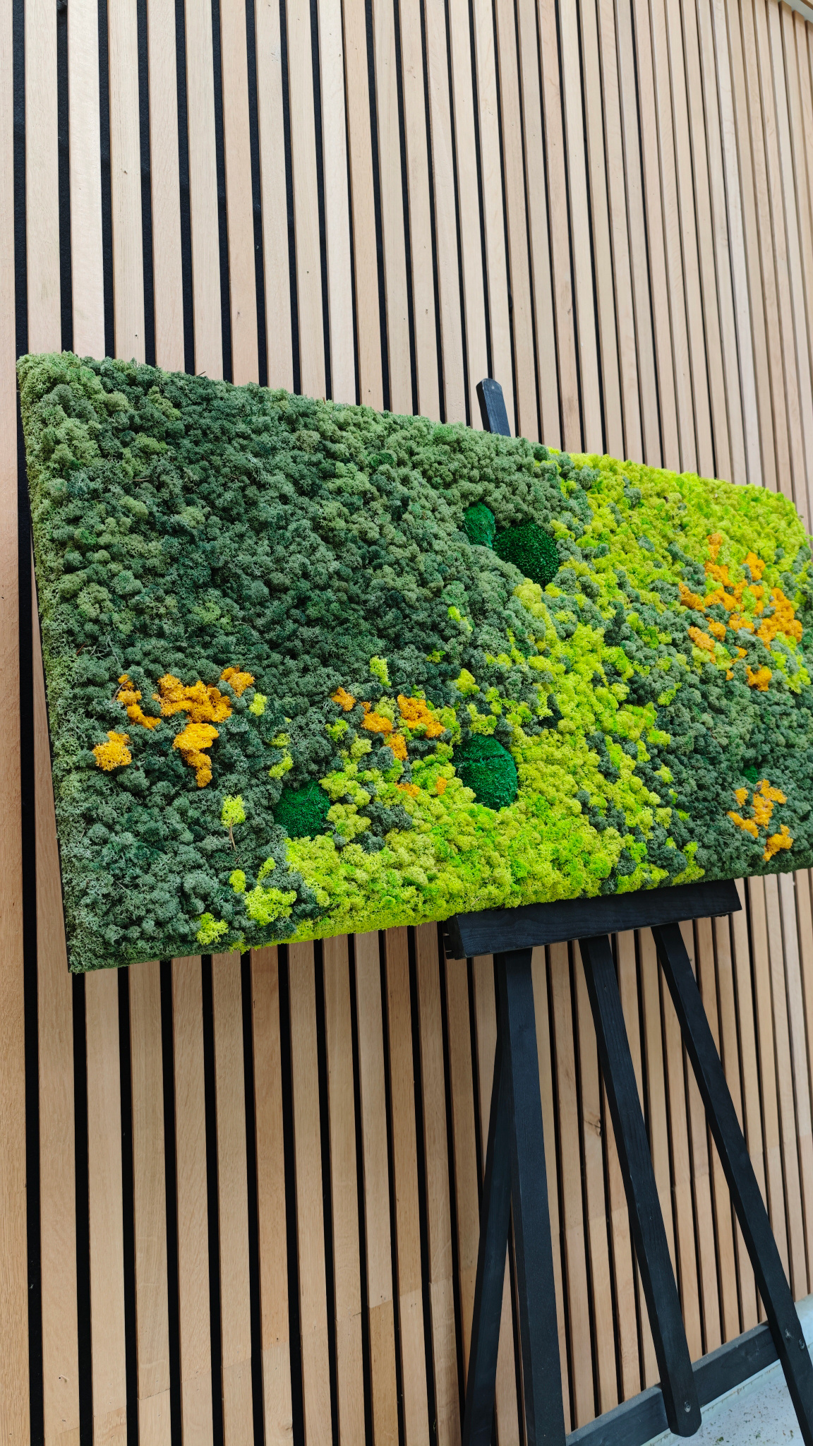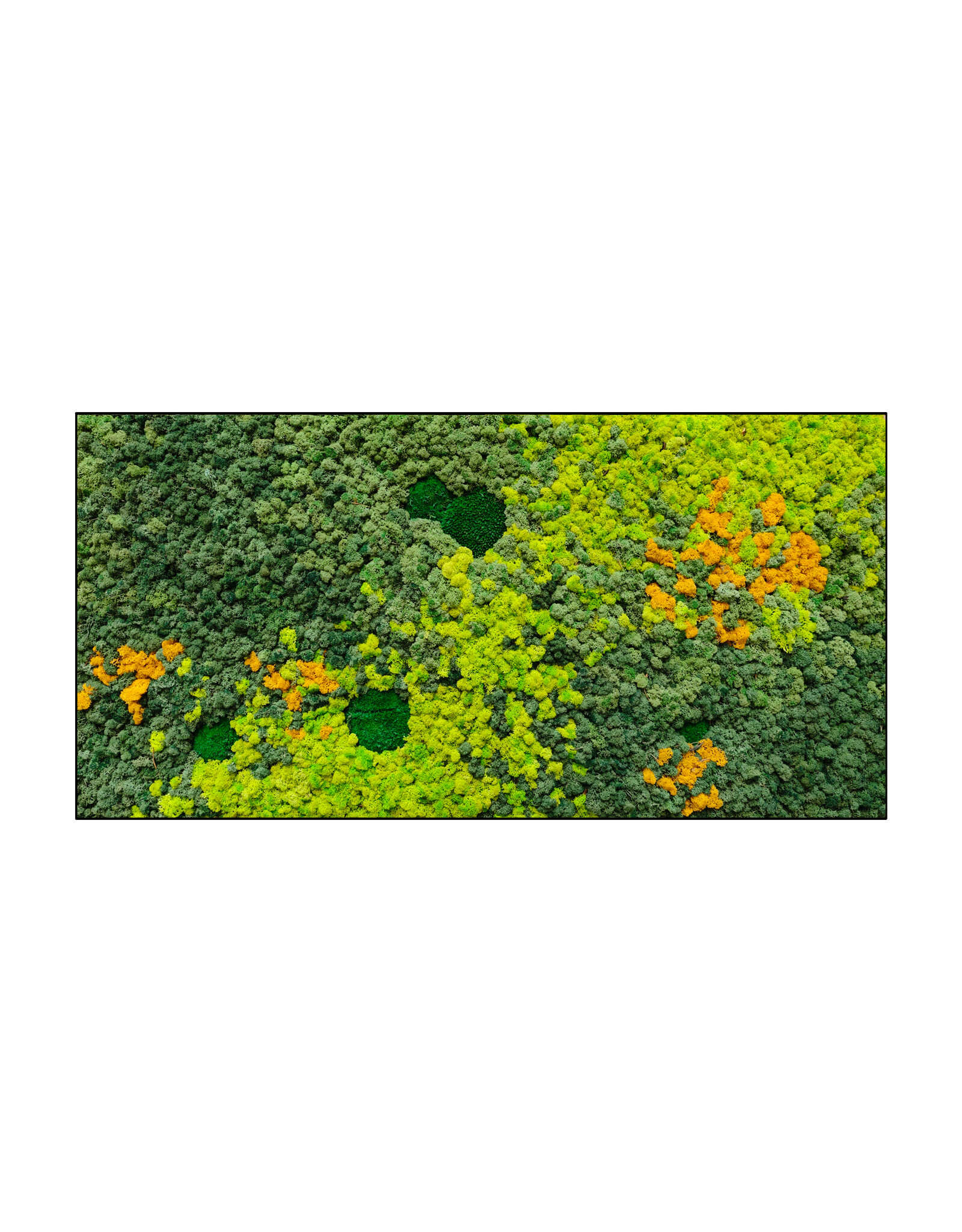 The image shows the pattern of a moss rectangle in the size 120x60 cm. As it is a natural product, every moss artwork is unique. As a result, the layout of the purchased moss artwork may differ from the selected photo. If you require a different size? Please contact us.