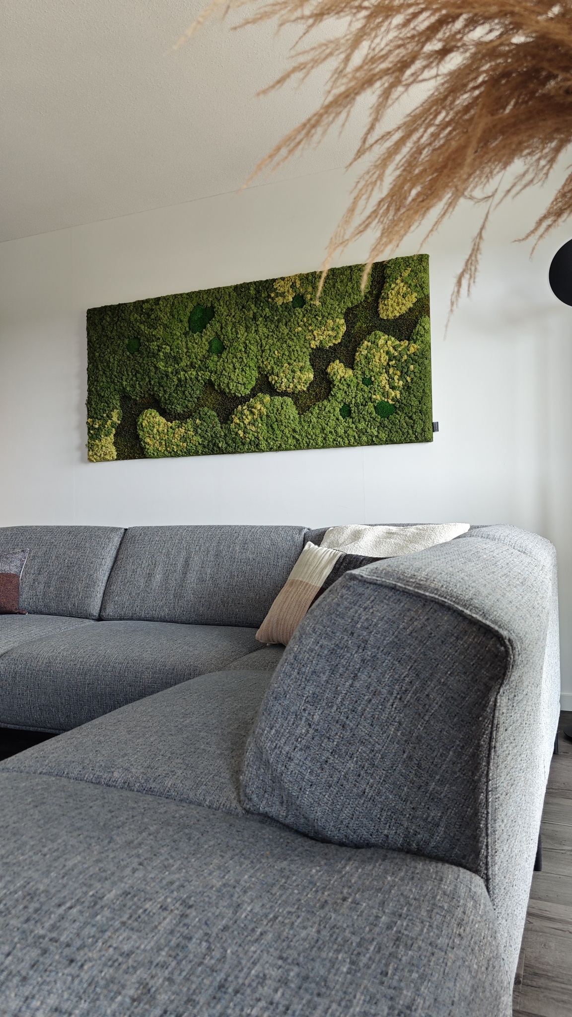 Wow, geweldig! We hebben dit mosschilderij verticaal gehangen. Bij binnenkomst via de achterdeur kijk je er recht op, supermooi!