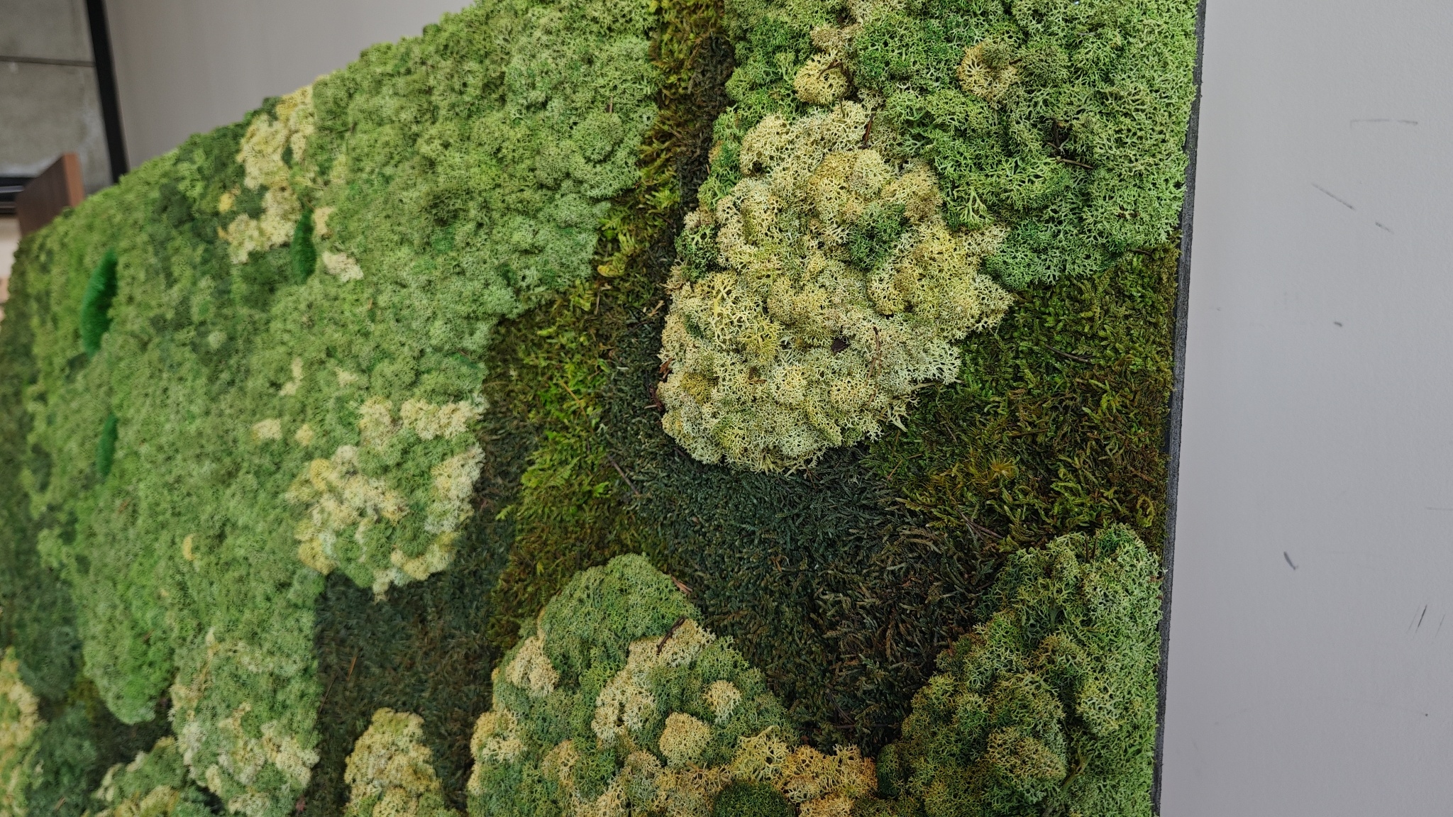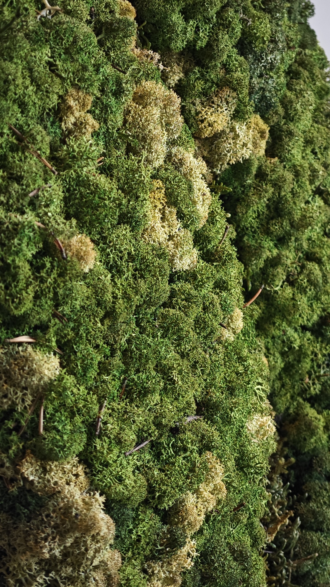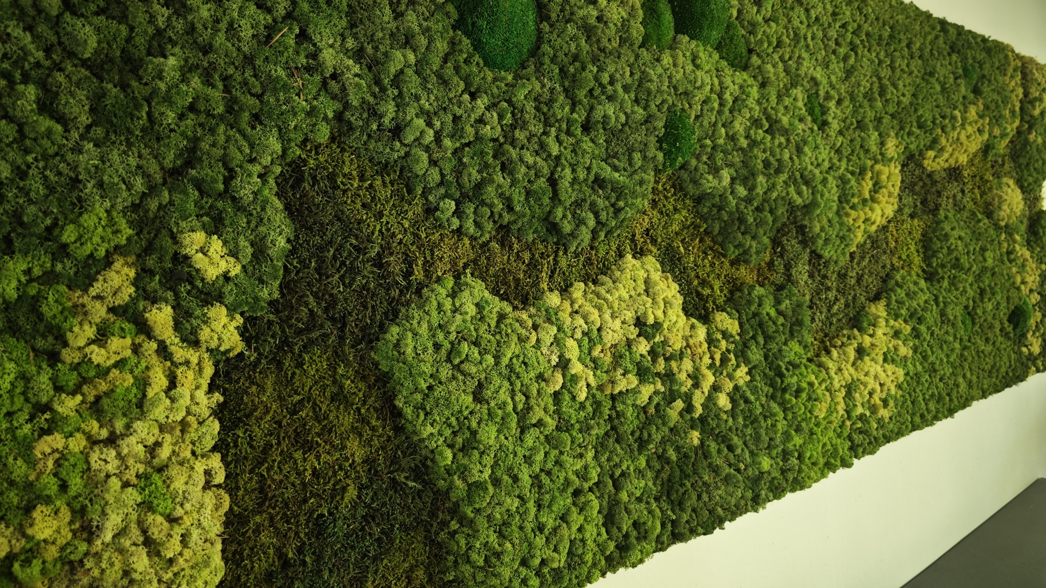 The moss used is a 100% natural product and requires 0% maintenance. Among its properties and advantages are; high acoustic damping, fire-retardant (impregnated), very colourfast, no daylight required, dirt repellent (antistatic) and because the moss is no longer alive it does not require any maintenance such as watering, pruning or fertilising. The moss creations are beautiful and soft to touch and have great appeal. Our mosses are of the highest quality, ensuring a very long lifespan (10-20 years).