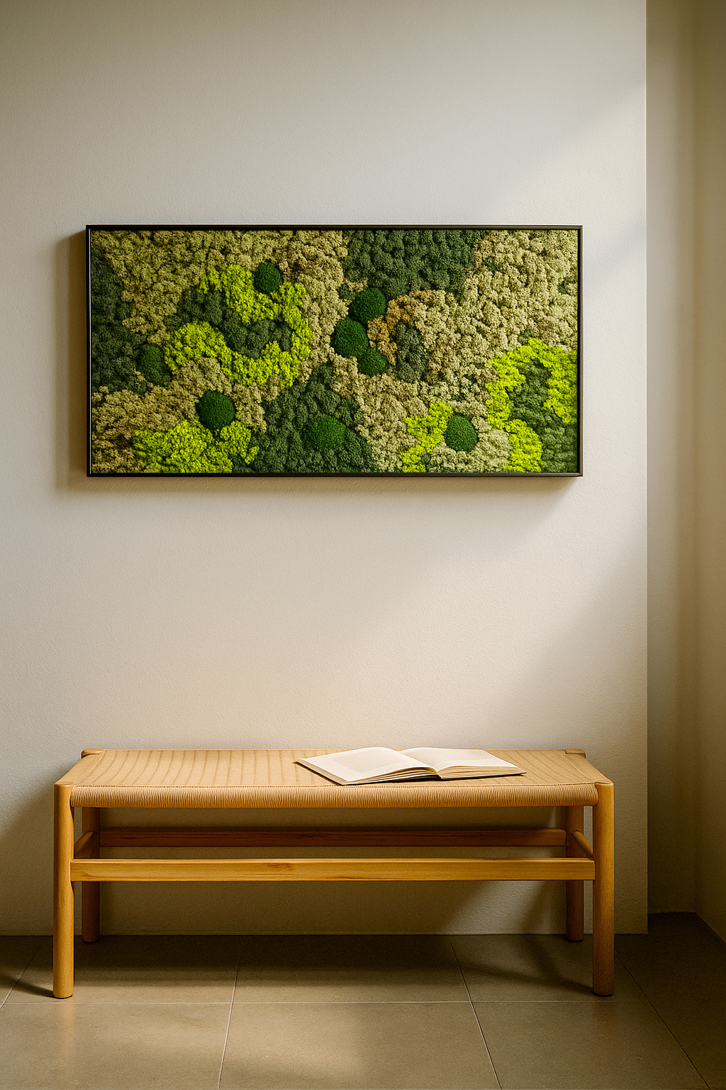 Ik werk vaak thuis en wilde wat demping in mijn kantoor. Sinds het mosschilderij er hangt, voelt de ruimte veel fijner aan. Blij mee.