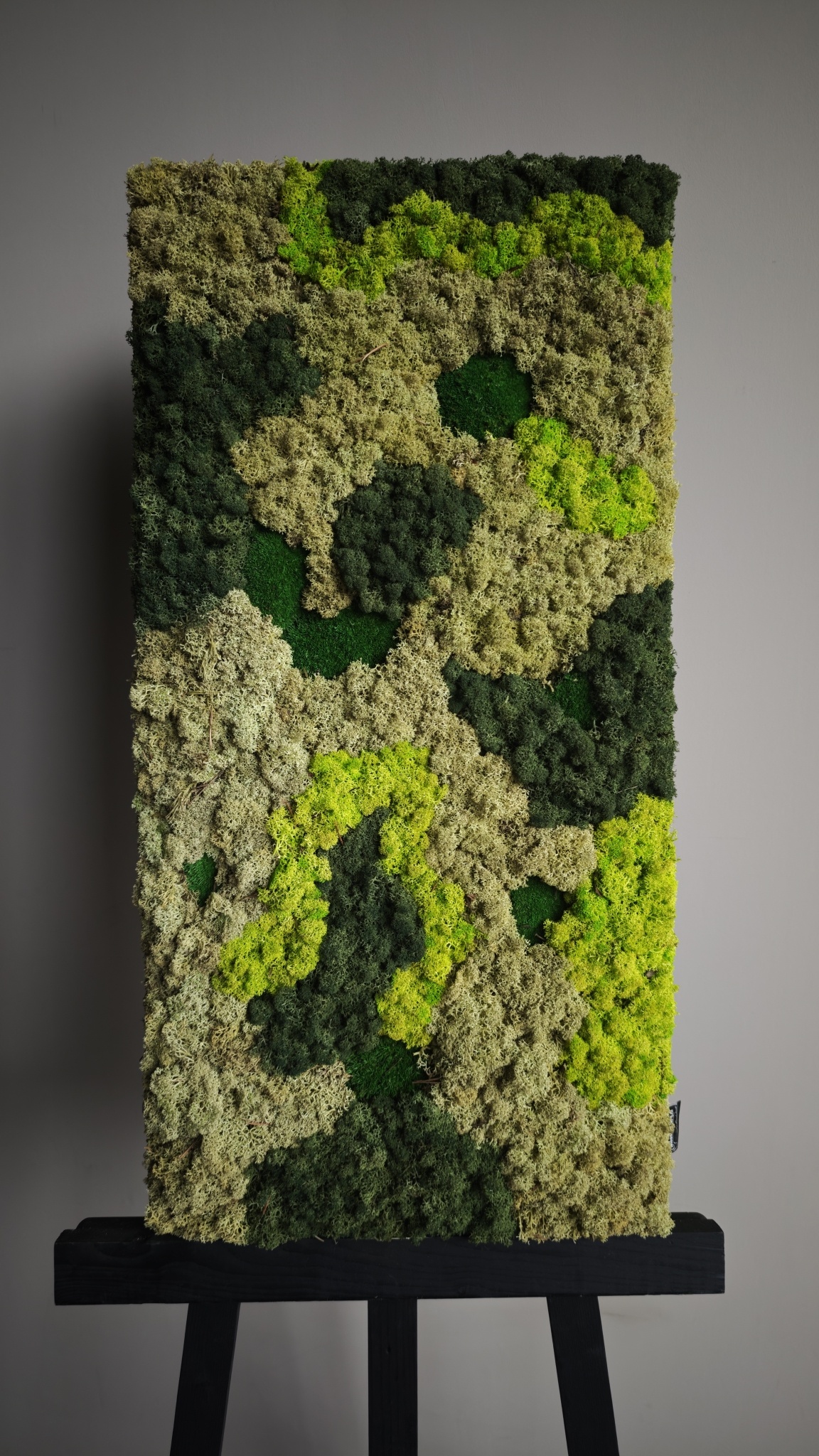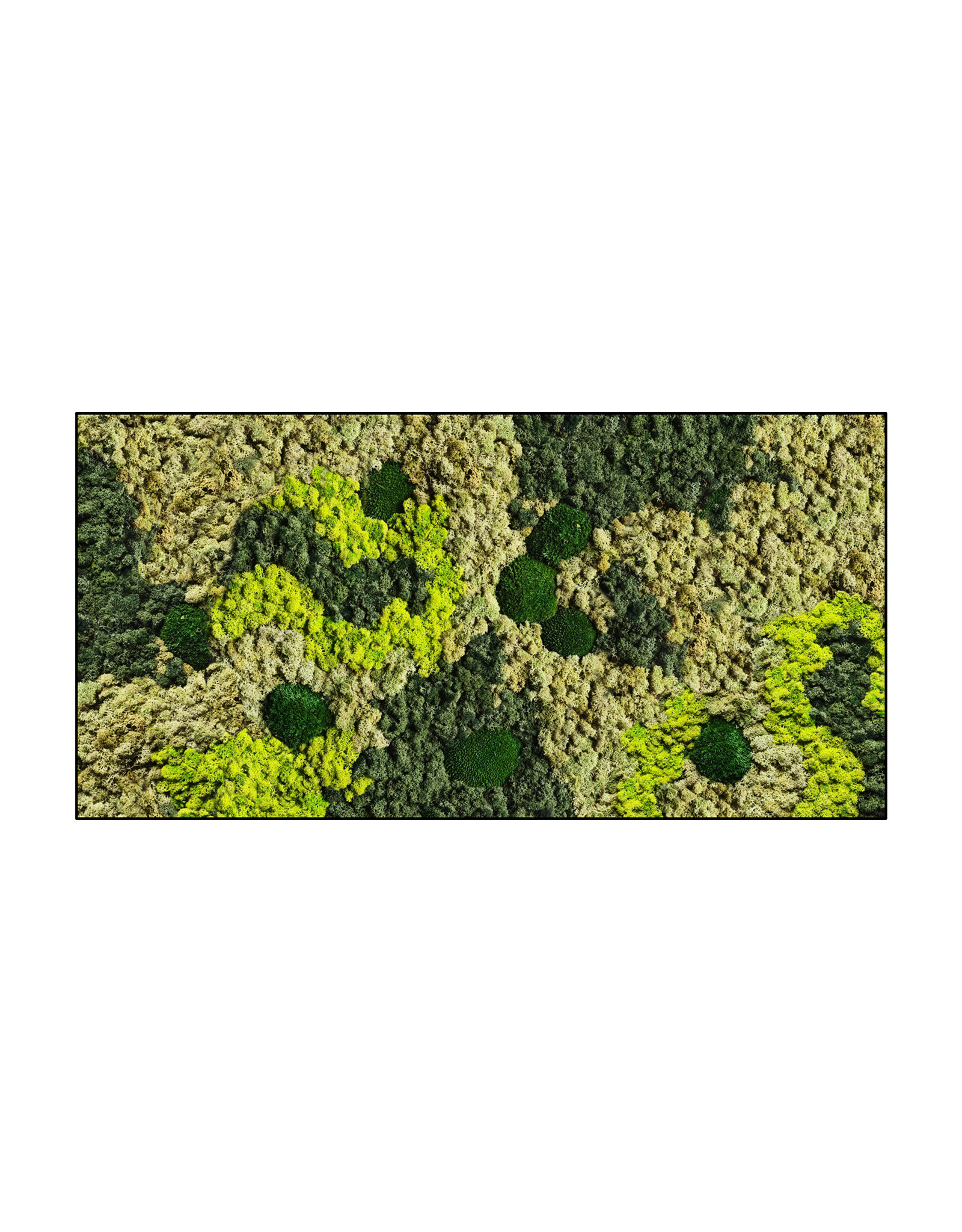The image shows the pattern of a moss rectangle in the size 120x60 cm. As it is a natural product, every moss artwork is unique. As a result, the layout of the purchased moss artwork may differ from the selected photo. If you require a different size? Please contact us at [email protected].