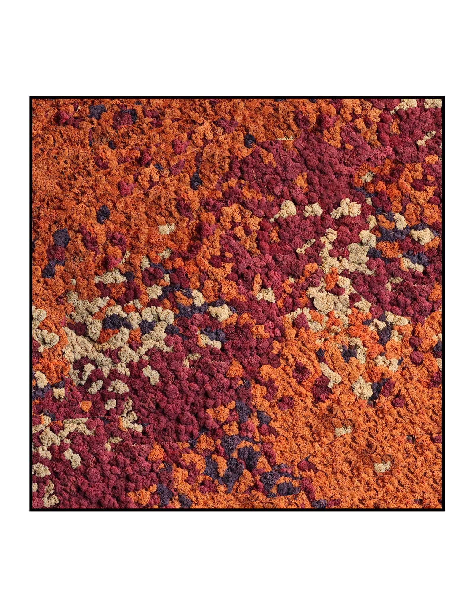 Moss artwork Autana is a true eye-catcher that breaks away from traditional green moss creations. Instead of green, this artwork radiates warmth and depth, thanks to a unique mix of colors: the fiery Persici, the light tones of Naturalis, the soft Casia, and the deep Bordeaux. Together, they create an expressive and vibrant composition that gives any space a powerful and stylish look.