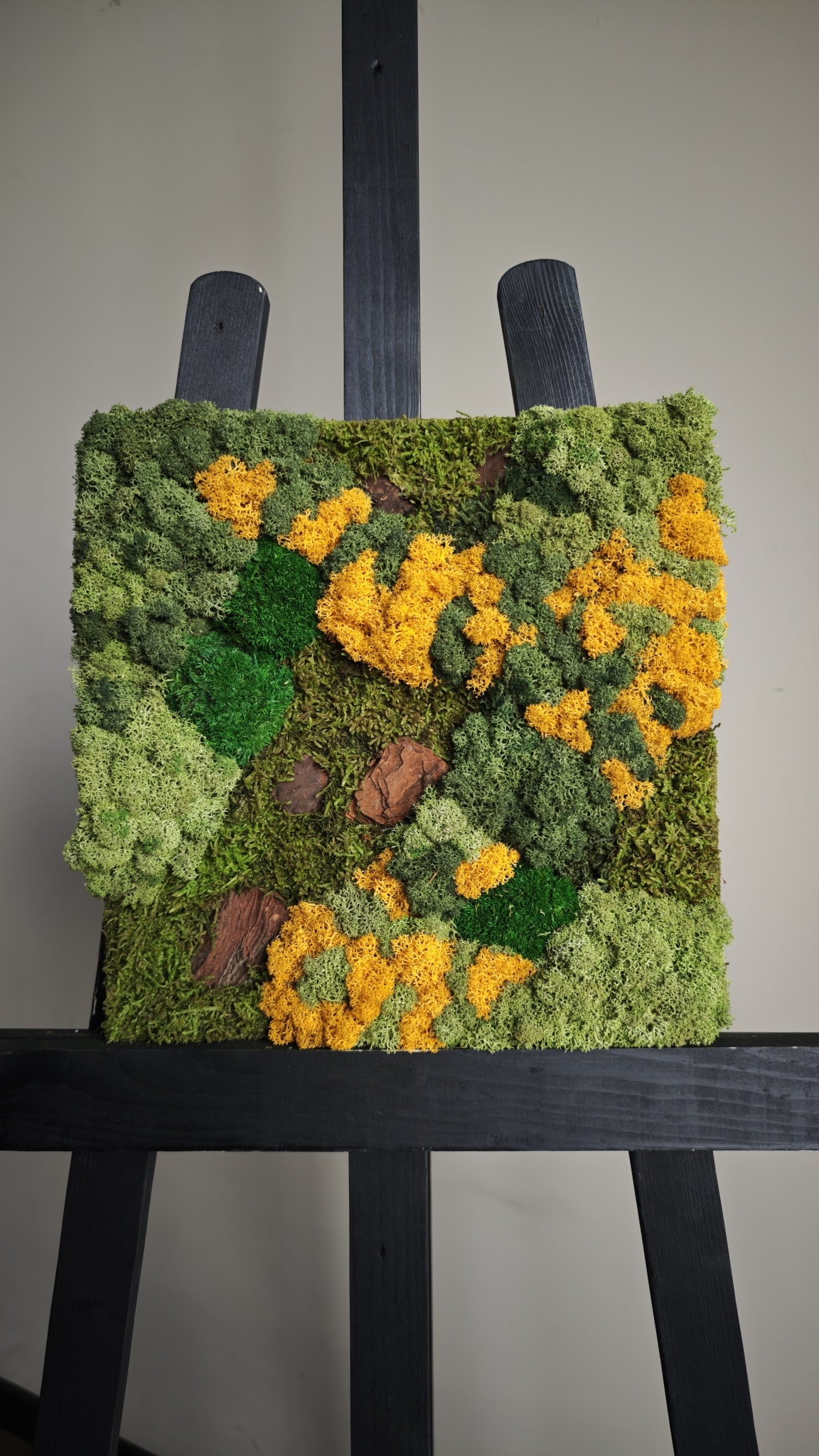 The image shows the pattern of a moss square in the size 100x100 cm. As it is a natural product, every moss artwork is unique. As a result, the format of the purchased moss square may differ from the selected photo. Should you require a different size? Please contact us at [email protected].