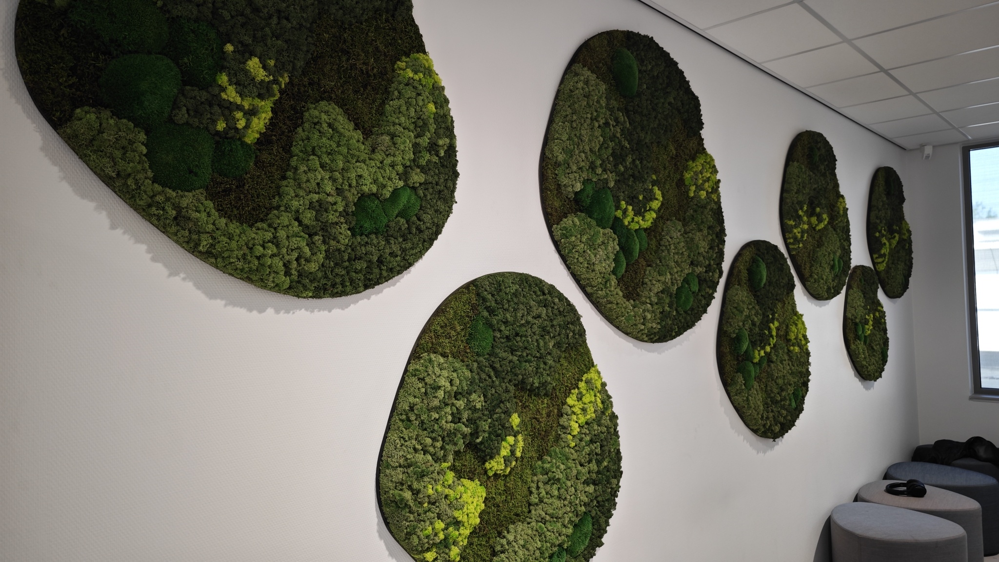 The moss used is a 100% natural product and requires 0% maintenance. Among its properties and advantages are: high acoustic damping, fire-retardant (impregnated), very colourfast, no daylight, dirt-repellent (antistatic) and because the moss is no longer alive, it requires no maintenance such as watering, pruning or fertilising. The moss creations are beautiful and soft to touch and have great appeal. Our mosses are of the highest quality, ensuring a very long lifespan (10-20 years).