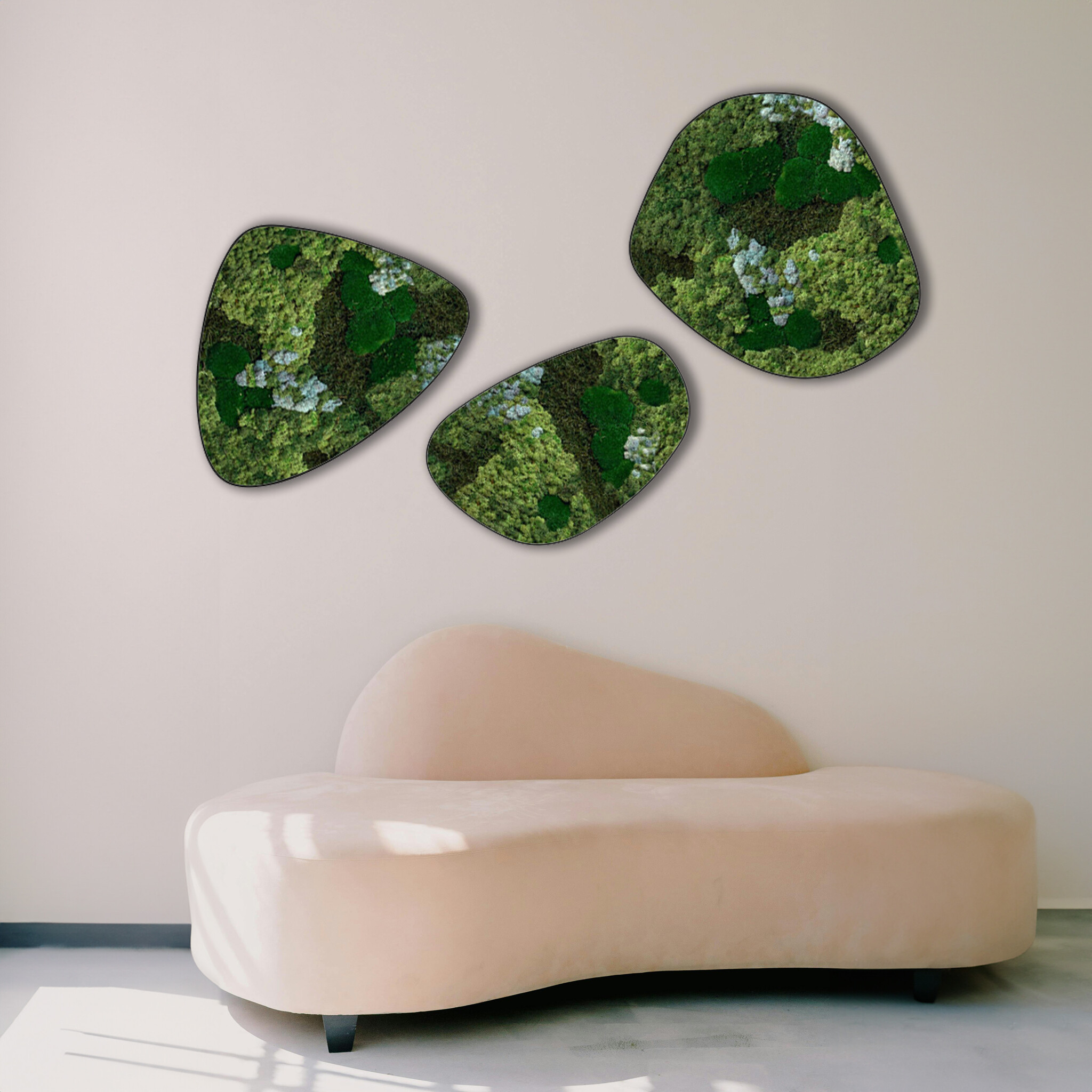 The dimensions are measured from the widest point. The image shows the pattern of a moss dot set in the size 100-100-100 cm (set 4). As it is a natural product, every moss artwork is unique. Therefore, the layout of the moss artwork purchased may differ from the selected photo. Should you require a different size? Please contact us at [email protected].