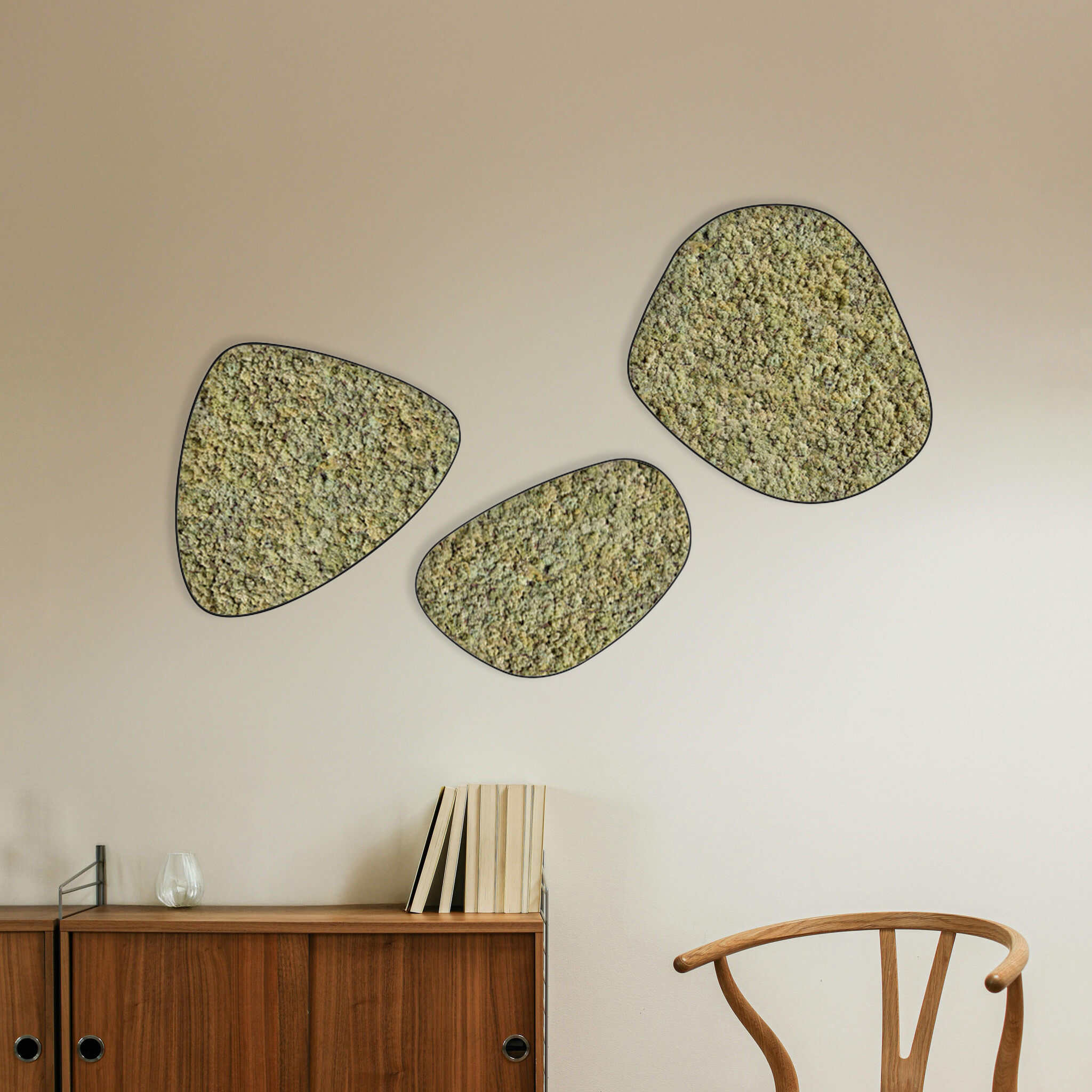The dimensions are measured from the widest point. The image shows the pattern of a moss dot set in the size 100-100-100 cm (set 4). As it is a natural product, every moss artwork is unique. Therefore, the layout of the moss artwork purchased may differ from the selected photo. Should you require a different size? Please contact us at [email protected].