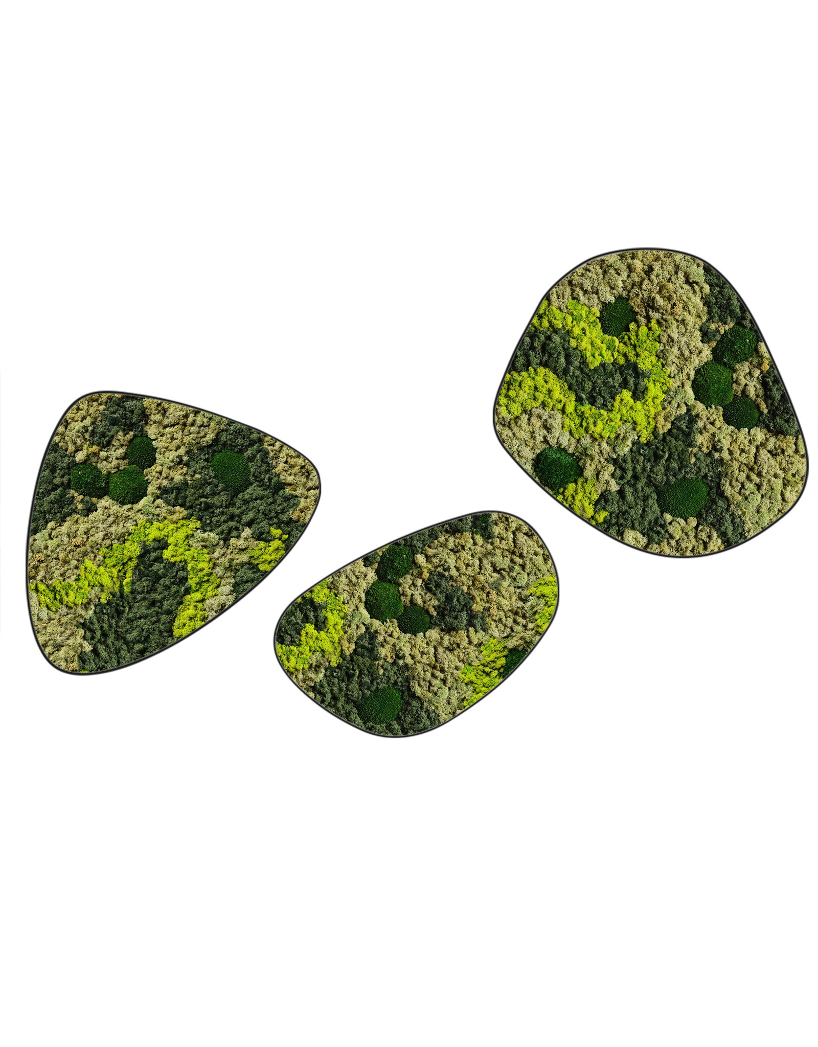 The dimensions are measured from the widest point. The image shows the pattern of a moss dot set in the size 100-100-100 cm (set 4). As it is a natural product, every moss artwork is unique. Therefore, the layout of the moss artwork purchased may differ from the selected photo. Should you require a different size? Please contact us at [email protected].
