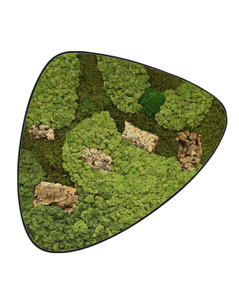 The moss applied is a 100% natural product and requires 0% maintenance. Among its properties and advantages are: high acoustic damping, fire-retardant (impregnated), very colourfast, no daylight, dirt-repellent (antistatic) and because the moss is no longer alive, it requires no maintenance such as watering, pruning or fertilising. The moss creations are beautiful and soft to touch and have great appeal. Our mosses are of the highest quality, ensuring a very long lifespan (10-20 years).