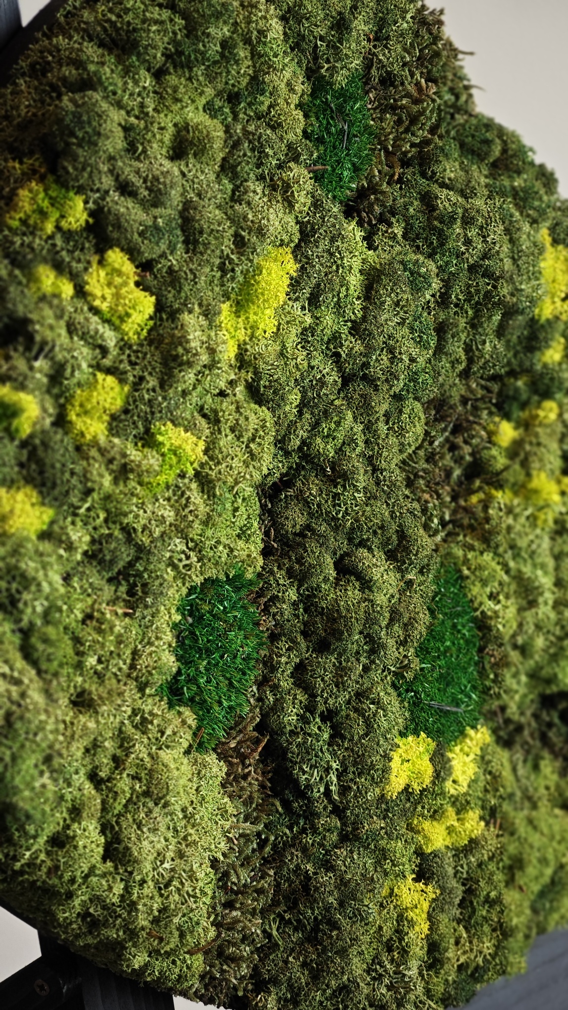 Moss artwork Evey is a stylish eye-catcher for any interior. This moss artwork contains green, natural shades of moss with a sparkling bright accent colour, giving the moss artwork a fresh and vibrant look. When you apply this moss artwork in your living or work space, a natural and peaceful atmosphere is created.