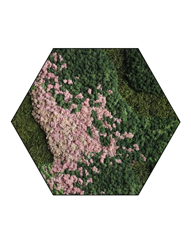 The image shows the pattern of a Hexagon in size 100 cm. As it is a natural product, every moss artwork is unique. As a result, the format of the moss artwork purchased may differ from the selected photo. Should you require a different size? Please contact us.