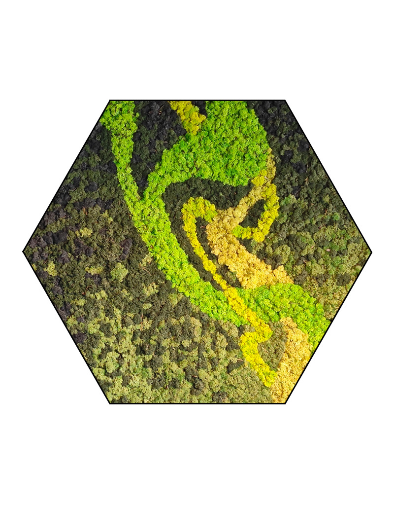 The image shows the pattern of a hexagon measuring 100 cm. Since it is a natural product, each moss painting is unique. Therefore, the layout of the purchased moss painting may differ from the selected photo. Would you like a different size? Or would you like to use our installation service? Contact us at [email protected]