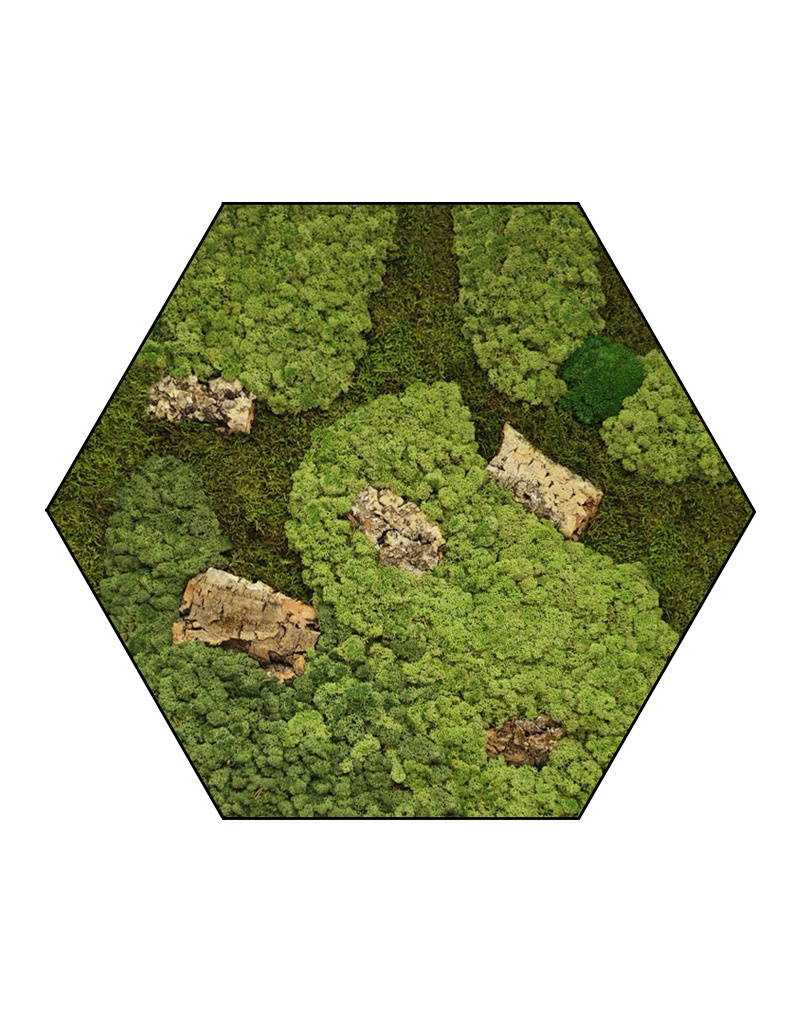 The image shows the pattern of a Hexagon in size 100 cm. As it is a natural product, each moss artwork is unique. As a result, the format of the moss artwork purchased may differ from the selected photo. Should you require a different size? Please contact us at [email protected].