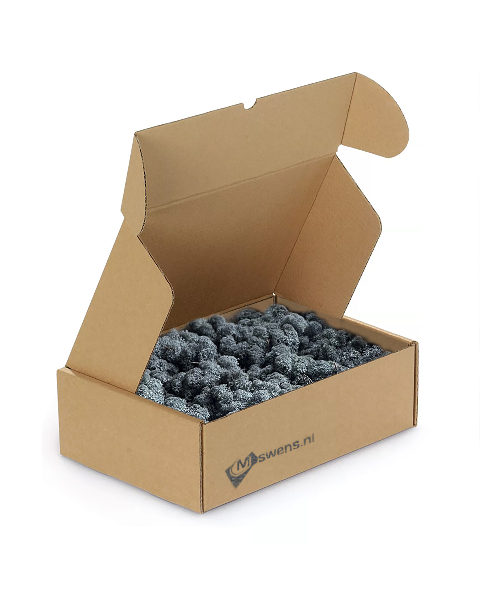 This 20x20x10 cm box contains reindeer moss. Good for making approximately 0.08 - 0.15 m². This depends on how 'solid' you want to process the moss and how 'fussy' you select and process the moss tufts supplied. This Medium pack is ideal if you want to mix moss colours together or for smaller surface areas.