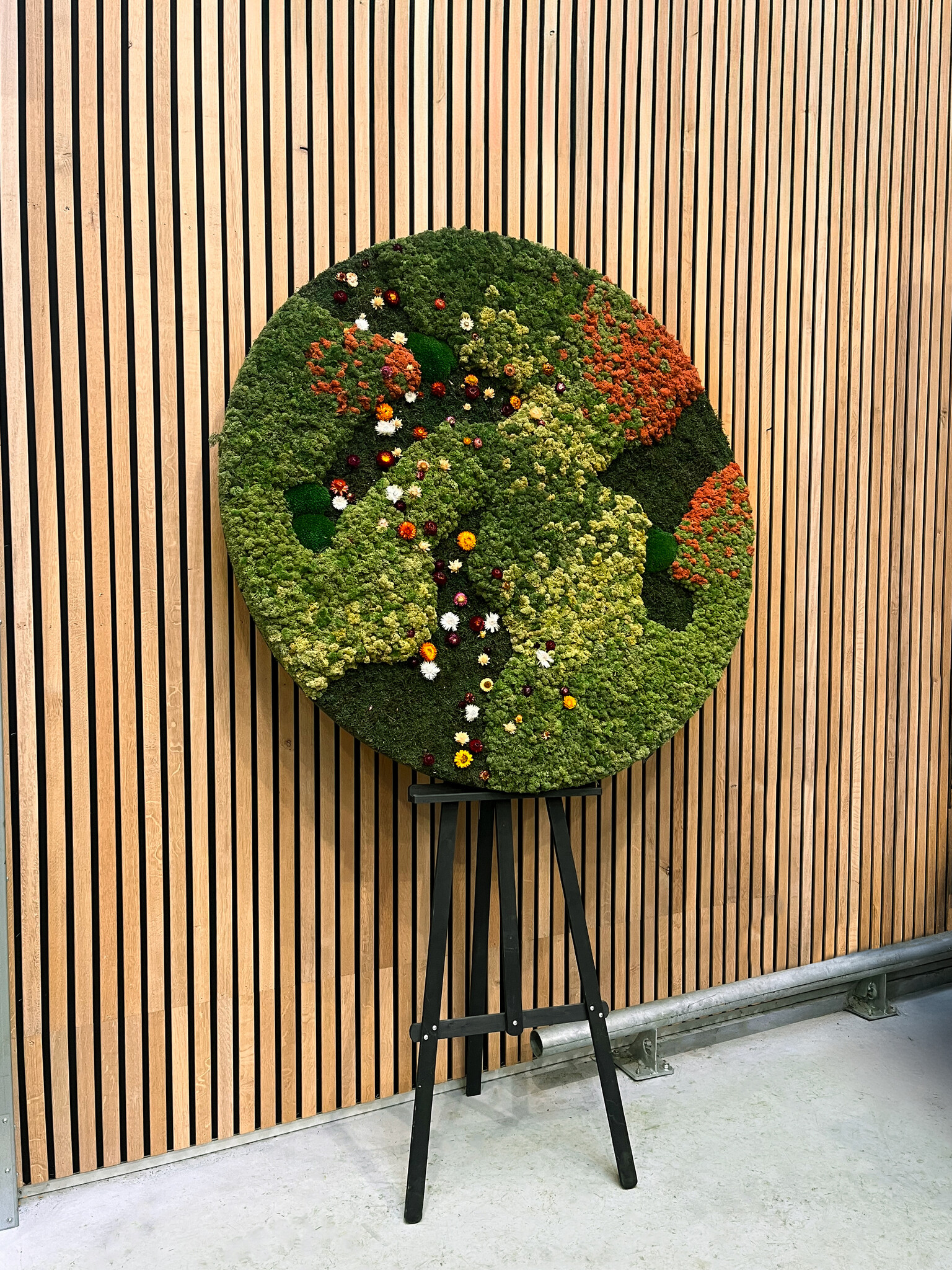 Met een rond mosschilderij wordt een een strak interieur doorbroken. Wist u dat onze ronde moscirkels met stalen rand erg goed staan in een industrieel interieur? De zachte, natuurlijke uitstraling van het mos geeft een mooie aanvulling op de vaak ‘harde’ toegepaste materialen zoals beton, staal en glas.