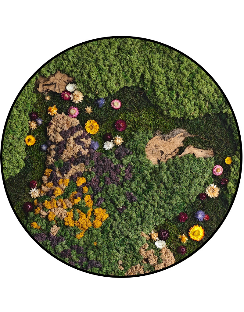 Op de afbeelding is het patroon zichtbaar van een moscirkel diameter 1.00. Aangezien het een natuurproduct is, is ieder mosschilderij uniek. Hierdoor kan de opmaak van de aangeschafte moscirkel afwijken van de geselecteerde foto. Mocht u een andere maat wensen? Neem contact met ons op via [email protected]