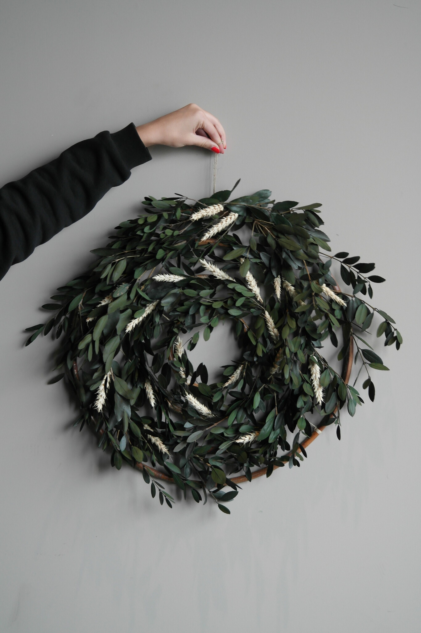 Breng een vleugje natuurlijke charme in je interieur met de DIY Decoratie Hanger Olivia. Dit ambachtelijke pakket bevat alles wat je nodig hebt om je eigen unieke decoratiehanger te maken. In het pakket vind je een prachtige rotan hanger, zorgvuldig geselecteerde, geprepareerde olijftakken en gedroogde tarwe – een combinatie van materialen die zorgen voor een verfijnde en rustige uitstraling.
