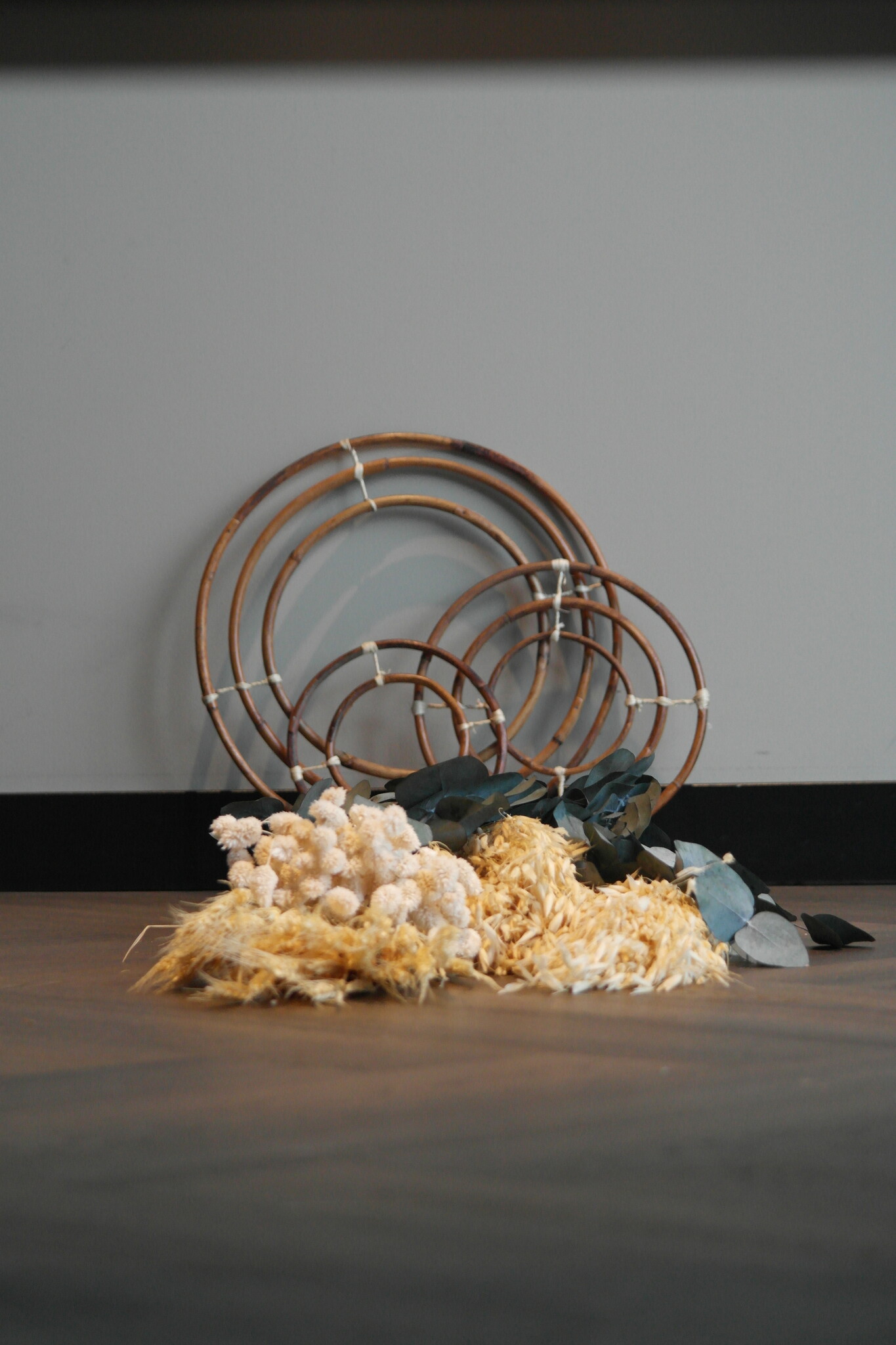 Breng een vleugje natuurlijke charme in je interieur met de DIY dromenvanger Naturola. Dit ambachtelijke pakket bevat alles wat je nodig hebt om je eigen unieke decoratiehanger te maken. In het pakket vind je een prachtige rotan hanger, zorgvuldig geselecteerde, geprepareerde Cinera bladeren, gedroogde tarwe, gedroogde haver en gedroogde Phalaris – een combinatie van materialen die zorgen voor een verfijnde en rustige uitstraling.