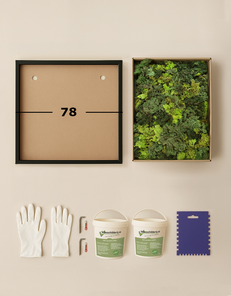 Met dit ECO DIY mospakket maak je eenvoudig zelf een uniek en levendig mosschilderij. Kies uit verschillende kleuren mos. Ga voor één stijlvolle kleur of kies voor een mix, zoals op de voorbeeldfoto te zien is. Zo creëer je een echt persoonlijk kunstwerk dat perfect past in jouw interieur.