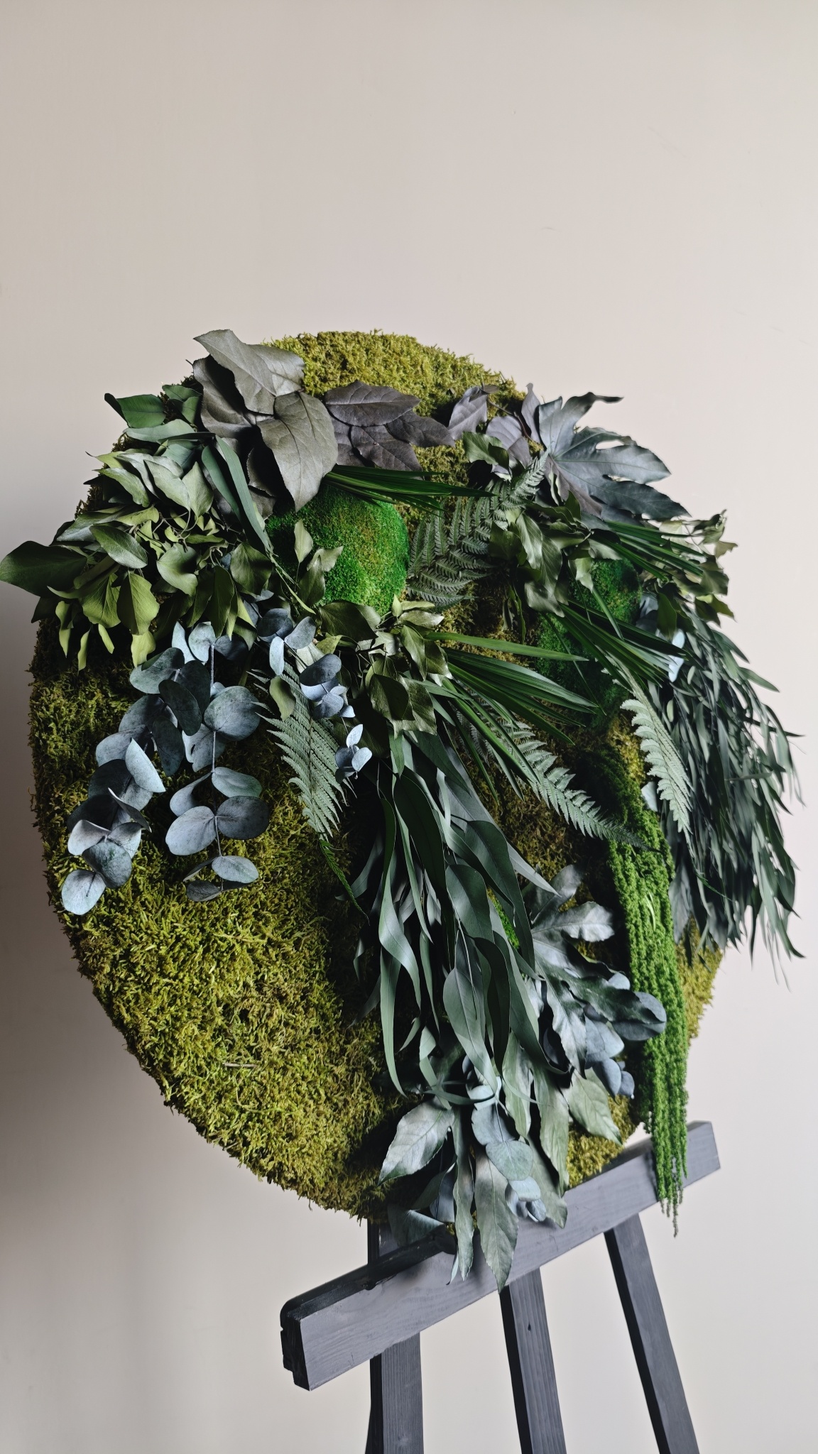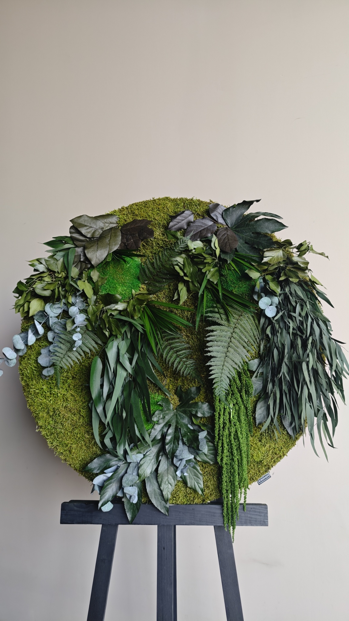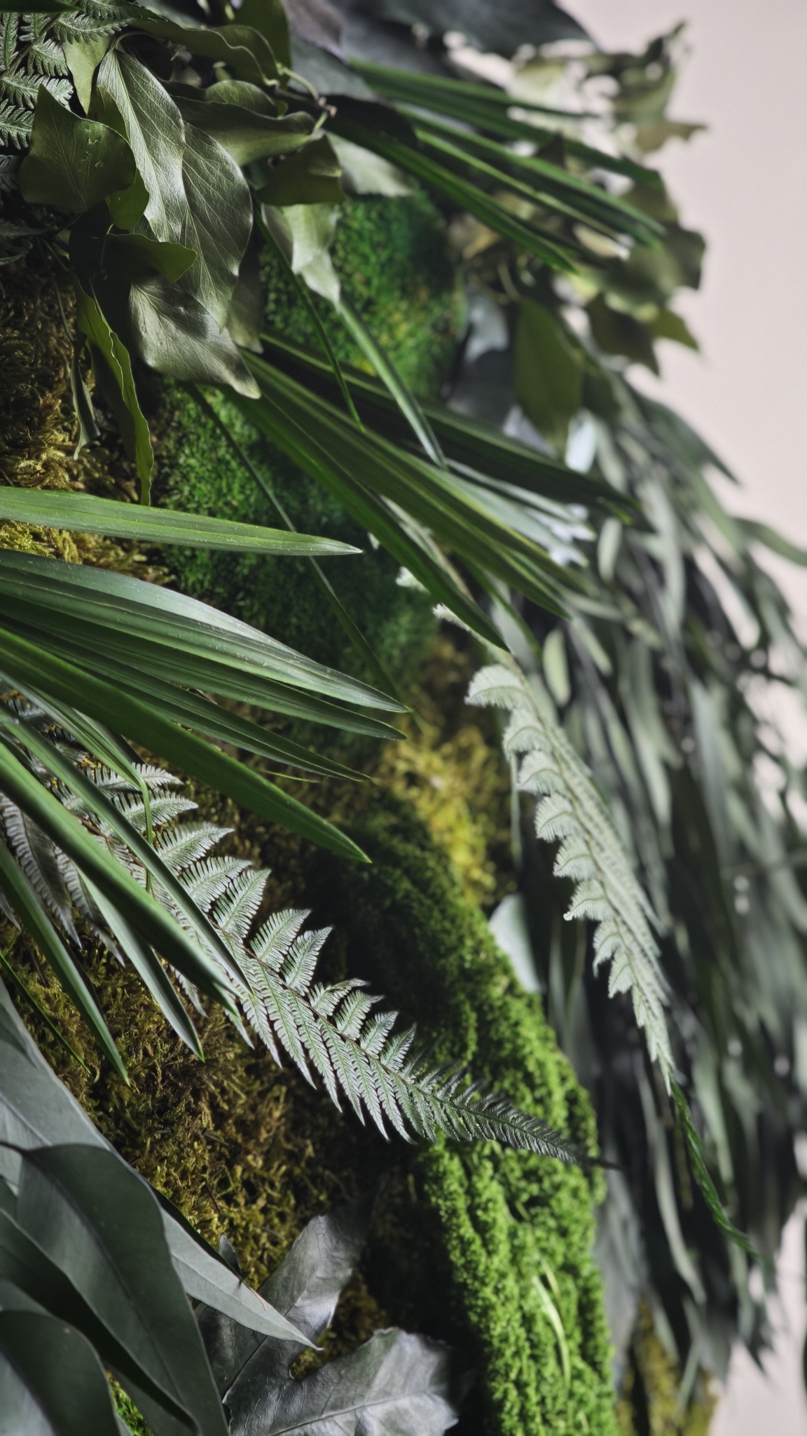 Mosvariant Jane bestaat uit 50% mossen en 50% jungle. De jungle heeft een grote diversiteit aan planten, varens en bladeren. Door deze prachtige mix van verschillende vormen en kleuren ontstaat er een ware Urban Jungle. Ook deze variant vergt geen onderhoud. Wij prepareren namelijk de varens, planten en bladeren op dezelfde wijze als de mossen. Deze behandelwijze zorgt ervoor dat het jungleschilderij jarenlang mooi blijft.