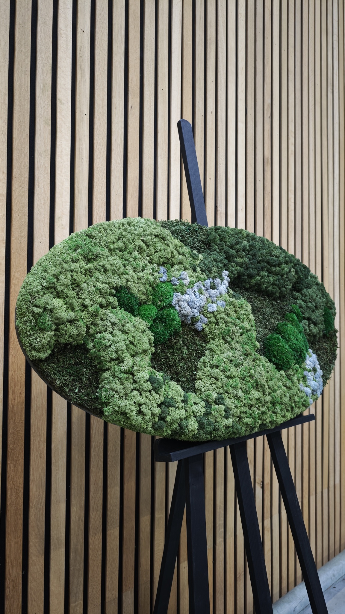Aangezien het een natuurproduct is, is ieder mosschilderij uniek. Hierdoor kan de opmaak van de aangeschafte mosovaal afwijken van de geselecteerde foto. Een andere afmeting wenselijk? Neem dan contact op via [email protected]