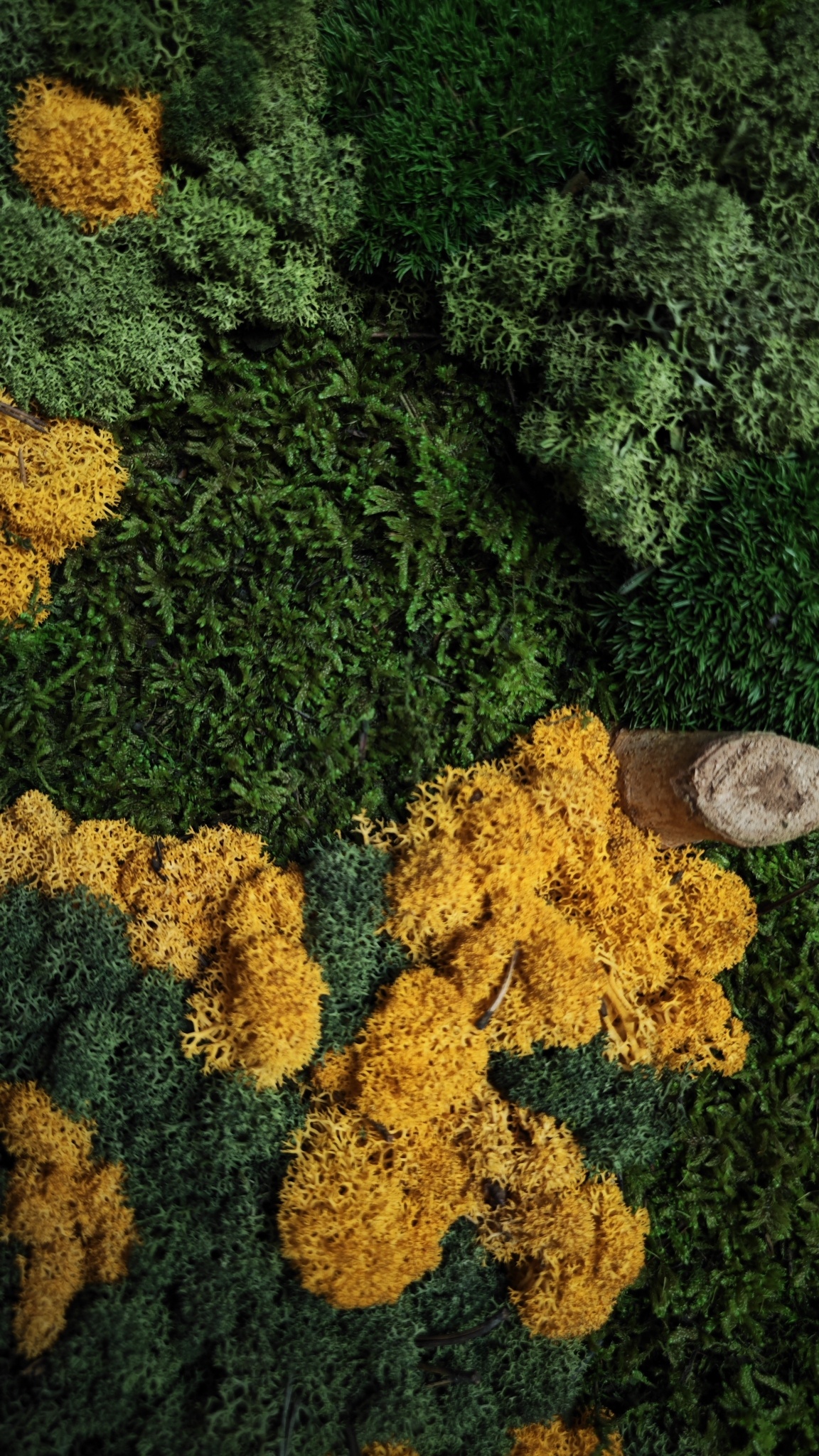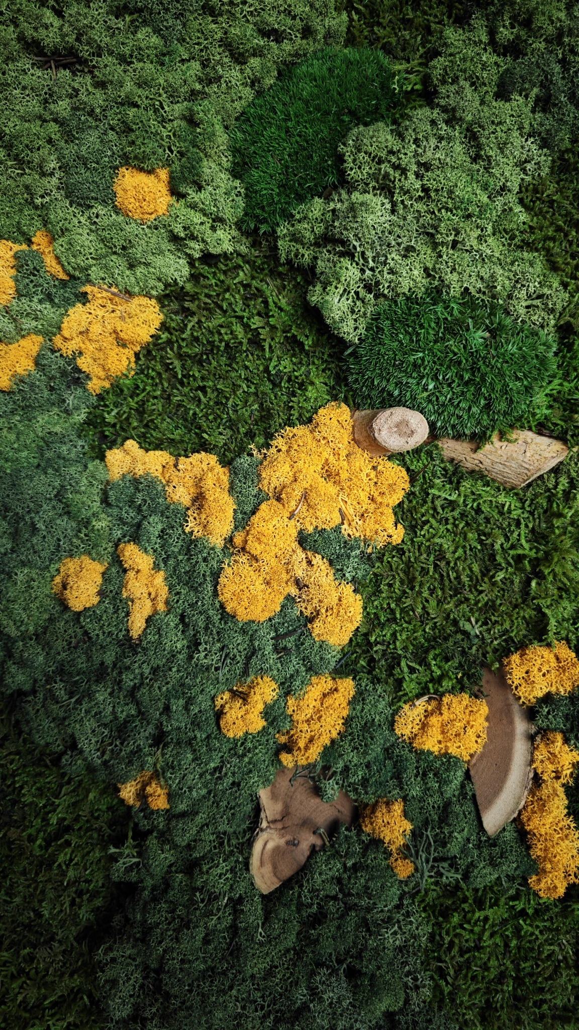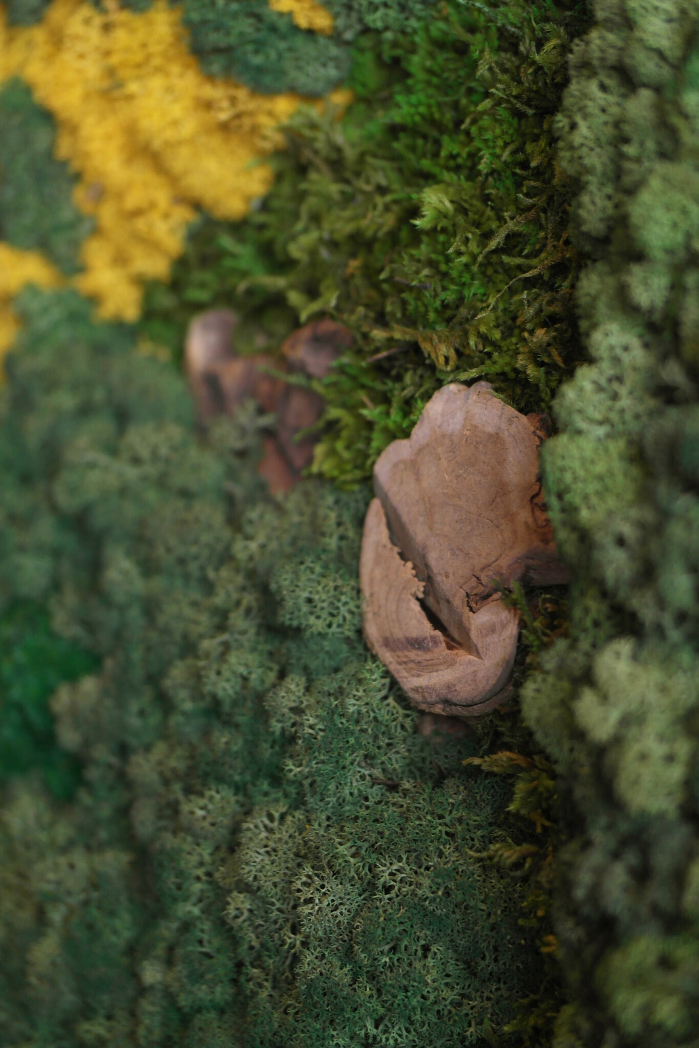Houd u van een frisse kleur en wilt u de ruimte opfleuren? Dan is mosvariant Flavo de stijl die bij uw interieur past. Doordat we met houten details werken krijgt deze stijl een natuurlijke herfstachtige touch. Ook maken we gebruik van  platmos in de lichter kleur en bolmos. Een prachtige mossenmix dus!