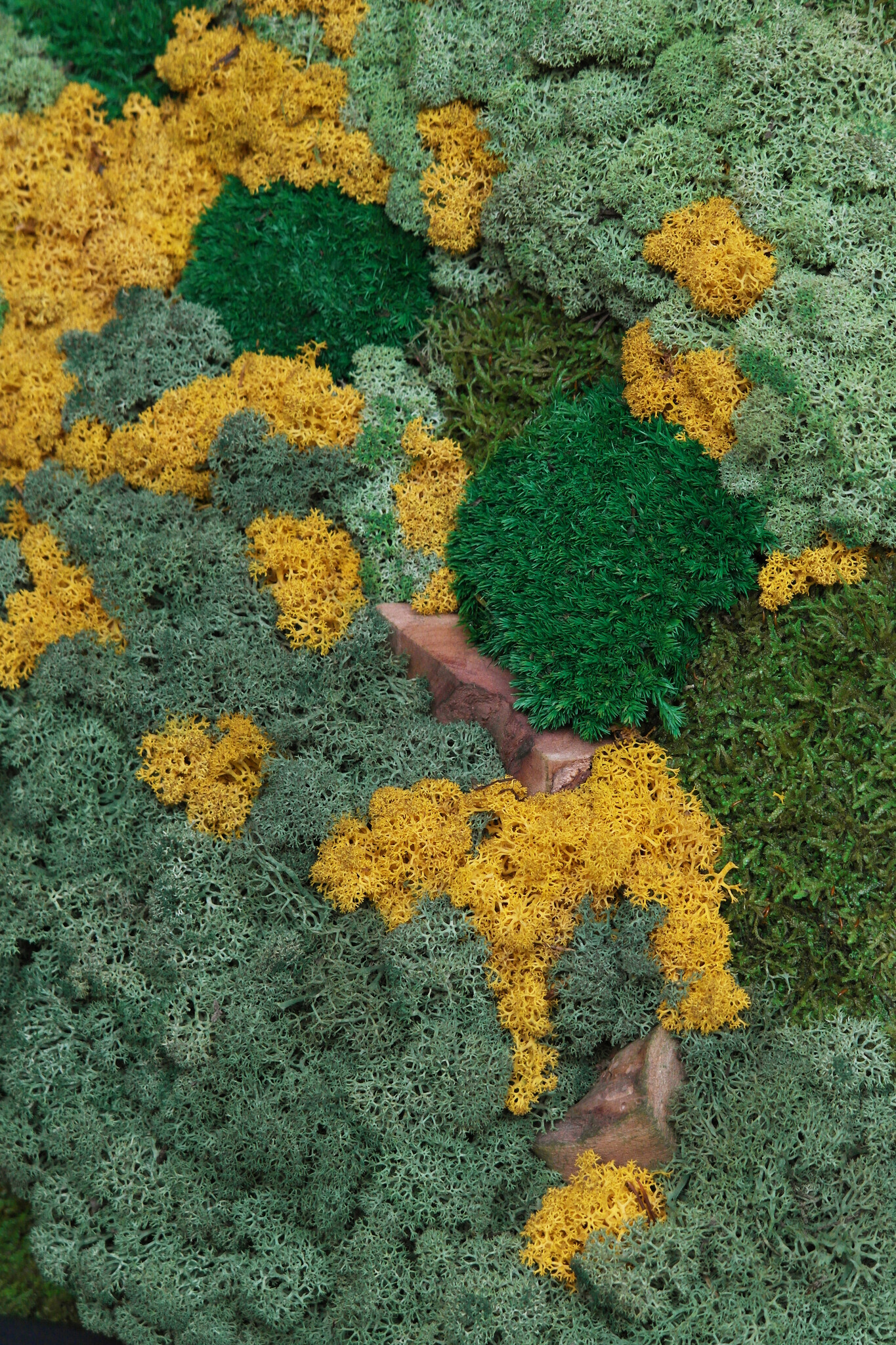 Elke mospuzzel is handgemaakt van geprepareerd mos en daardoor uniek. De opmaak van het aangeschaft mospuzzel kan daardoor afwijken. Op de afbeelding ziet u een voorbeeld met een formaat van 100 x 65 cm.