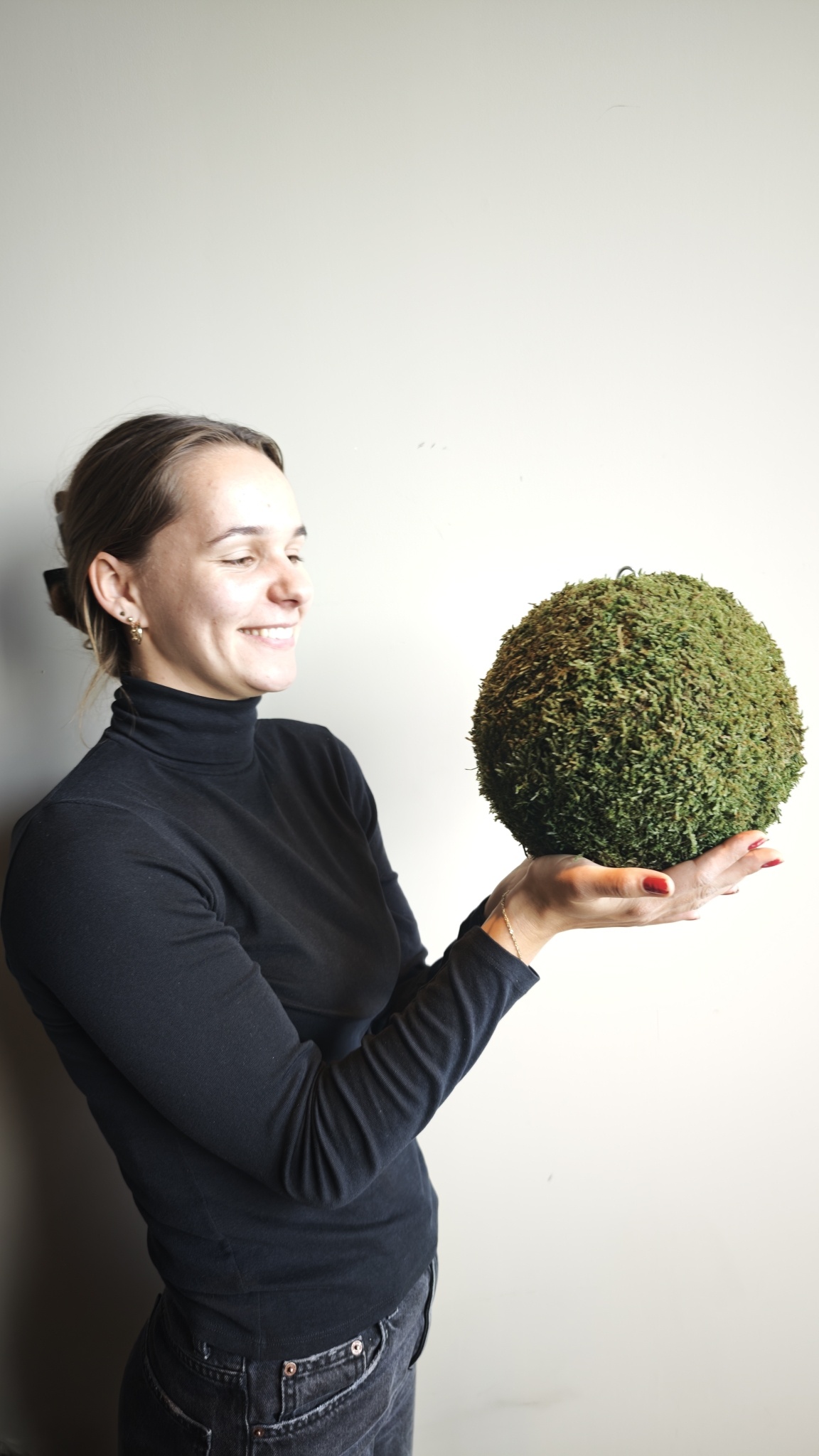 Het platmos is 100% natuurlijk en permanent geconserveerd. Daardoor is de bol volledig onderhoudsvrij: geen water, geen licht en geen verzorging nodig. Ideaal voor mensen met allergieën of wie kiest voor duurzame eenvoud.