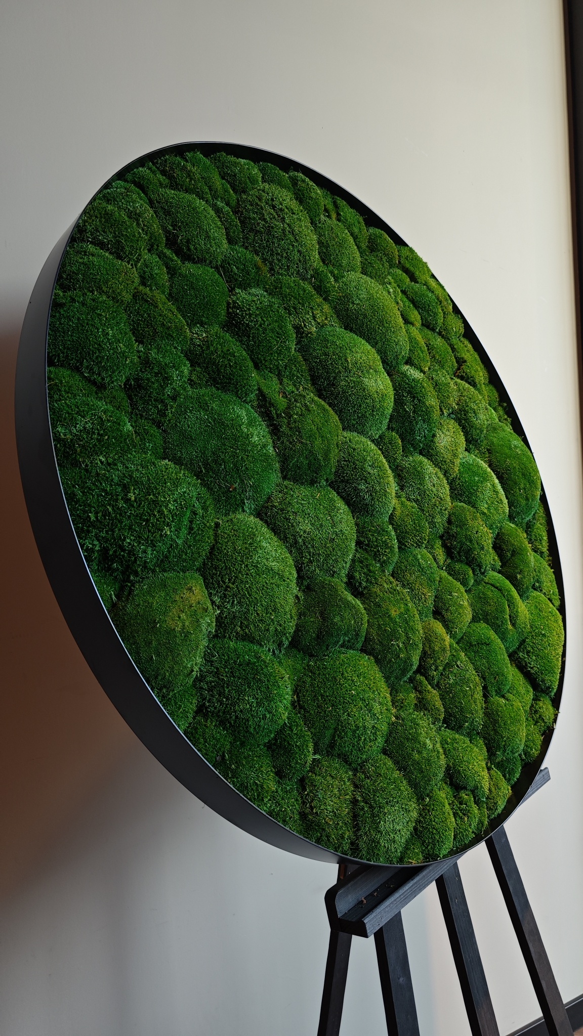 Met een rond mosschilderij wordt een strak interieur doorbroken. Wist u dat onze ronde moscirkels met stalen rand erg goed staan in een industrieel interieur? De zachte, natuurlijke uitstraling van het mos geeft een mooie aanvulling op de vaak ‘harde’ toegepaste materialen zoals beton, staal en glas.